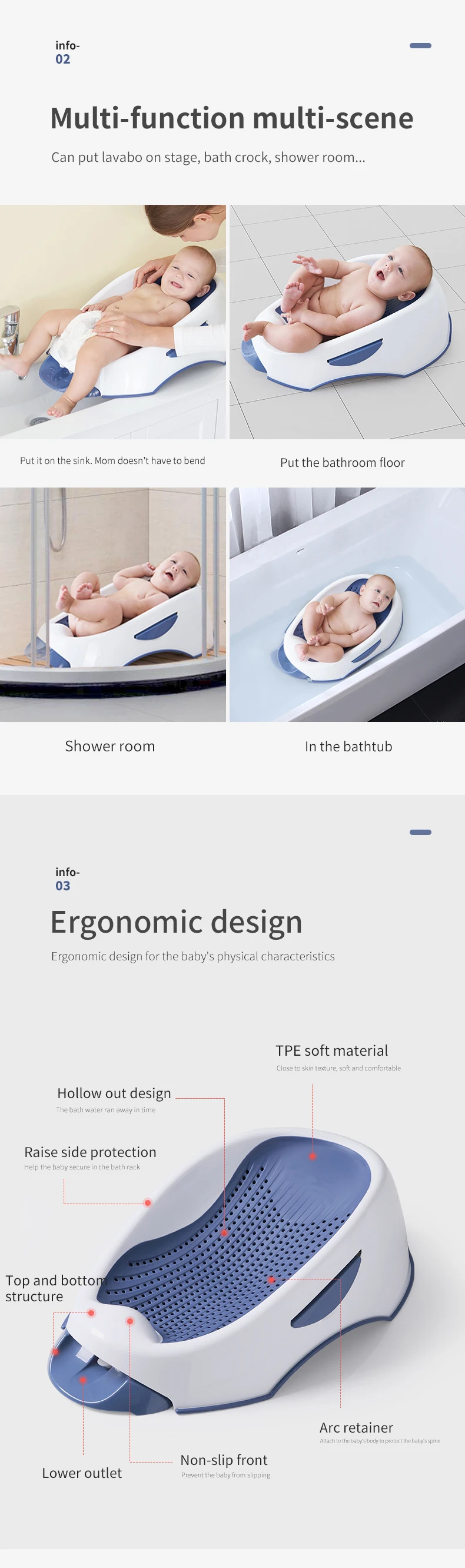 3. В соответствии с эргономичным линейным дизайном ребенка, защищает ребенка в положении лежа и купания, может эффективно поддерживать ягодицы ребенка, спина, защищает рост и развитие позвоночника ребенка