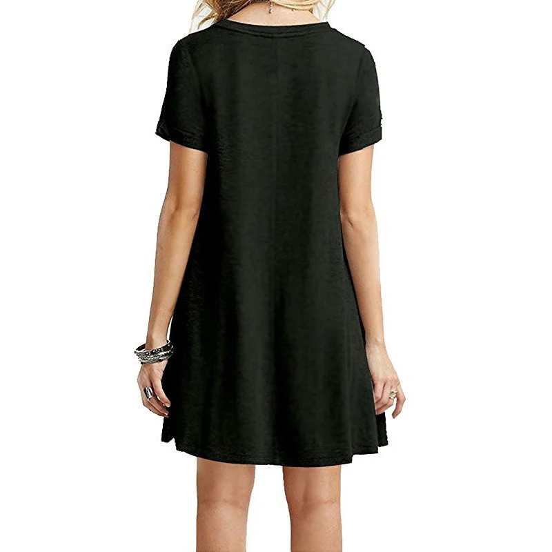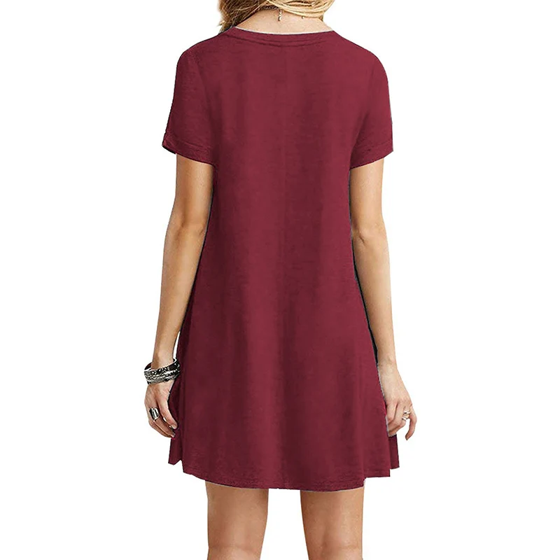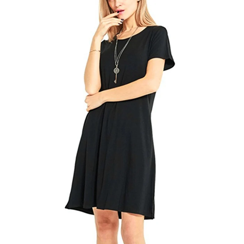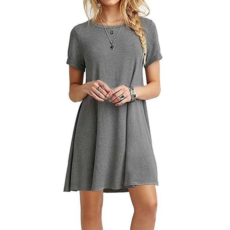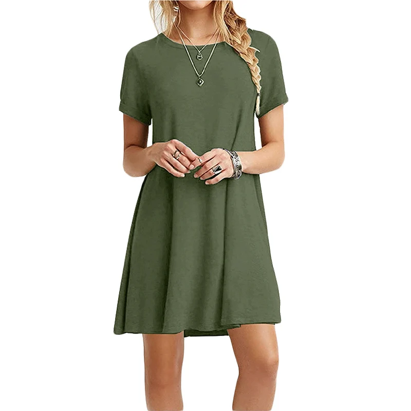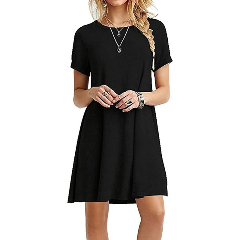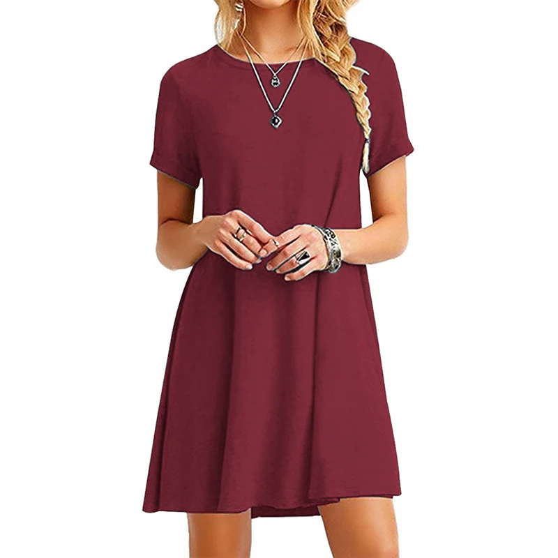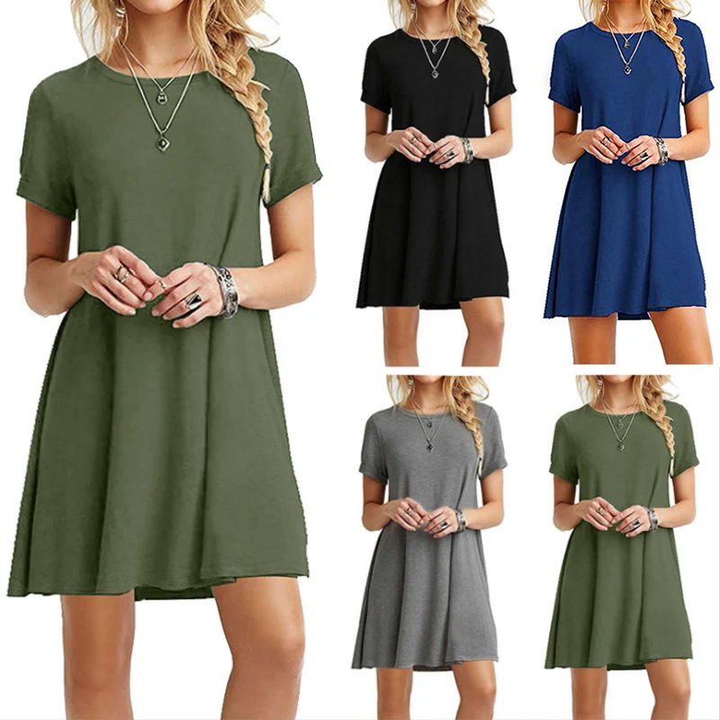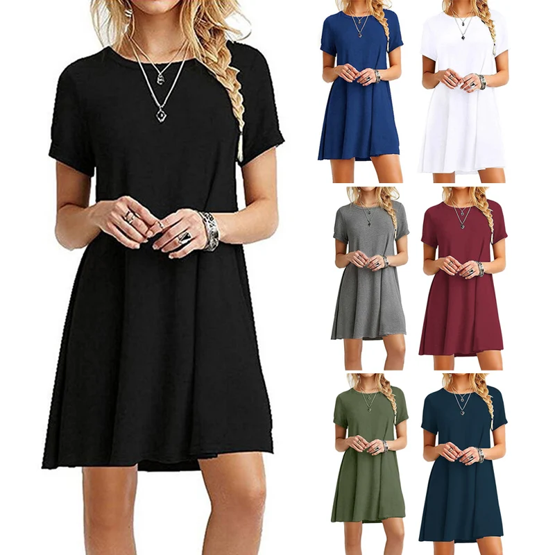 2.Тип одежды: женское летнее платье-футболка с коротким рукавом и круглым вырезом; Свободный пляжный сарафан; Однотонное платье трапециевидной формы
