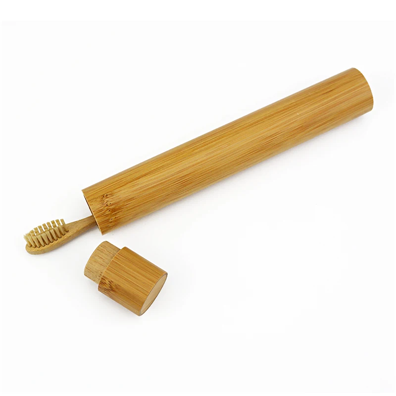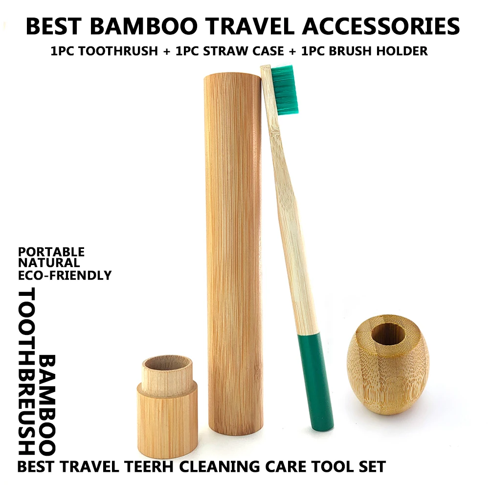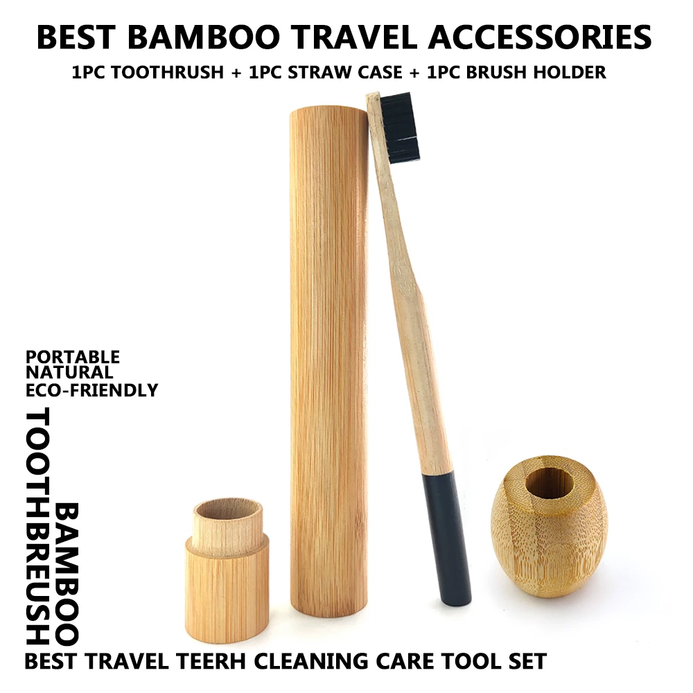 Лучшее количество натуральная цилиндрическая бамбуковая зубная щетка портативный дорожный набор с разлагаемой бамбуковой трубкой чехол из бамбуковой соломы и деревянный держатель для зубных щеток для походов на отдых путешествия интернат школа Чистка зубов полости рта инструменты