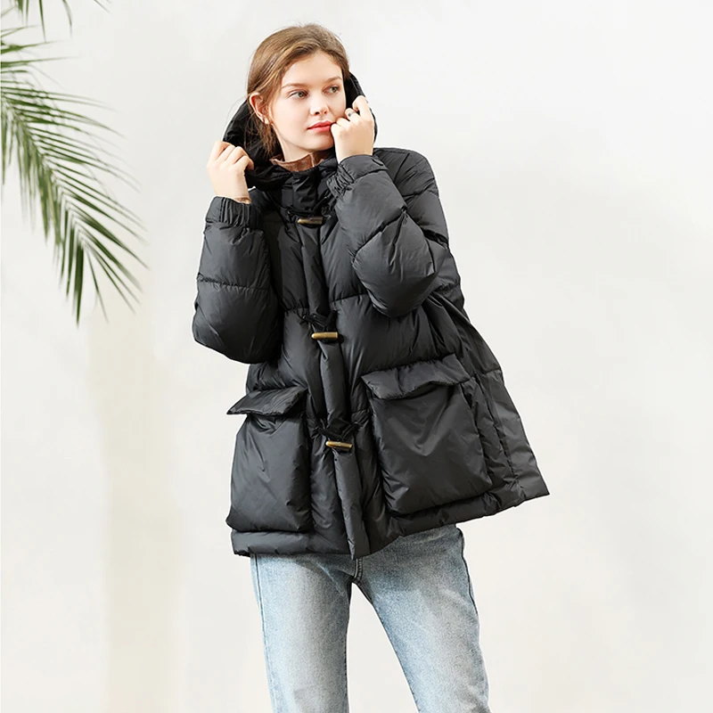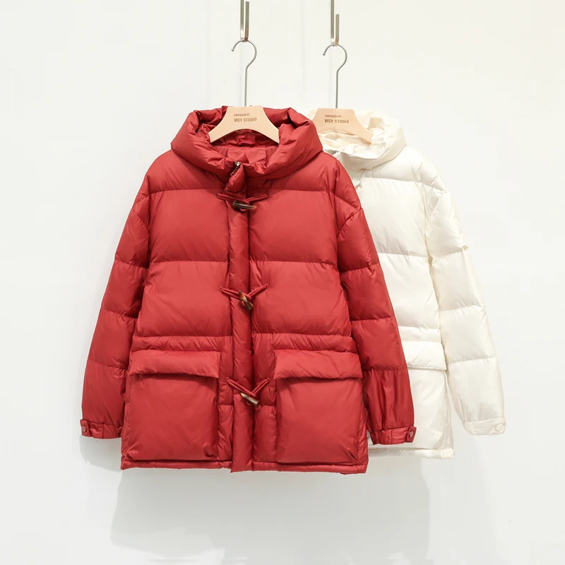 CN Размеры Плечо (дюйм) Обхват груди (дюйм) Длина (дюйм) Рукав (дюйм) S 25,2 45,7 27,2 18,5 М 25,6 47,2 27,6 18,9Пуховик на белом утином пуху