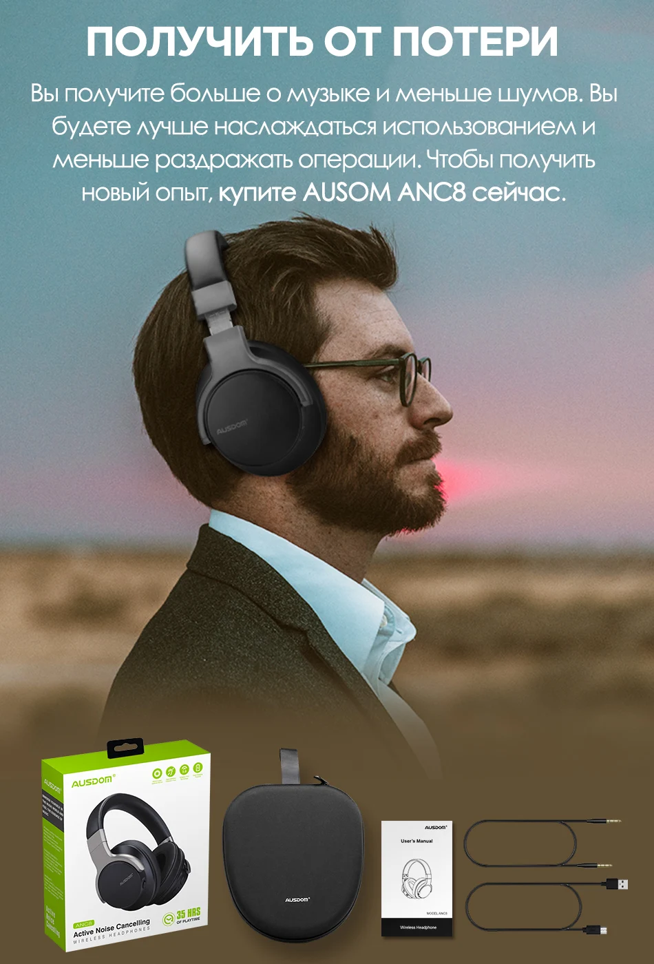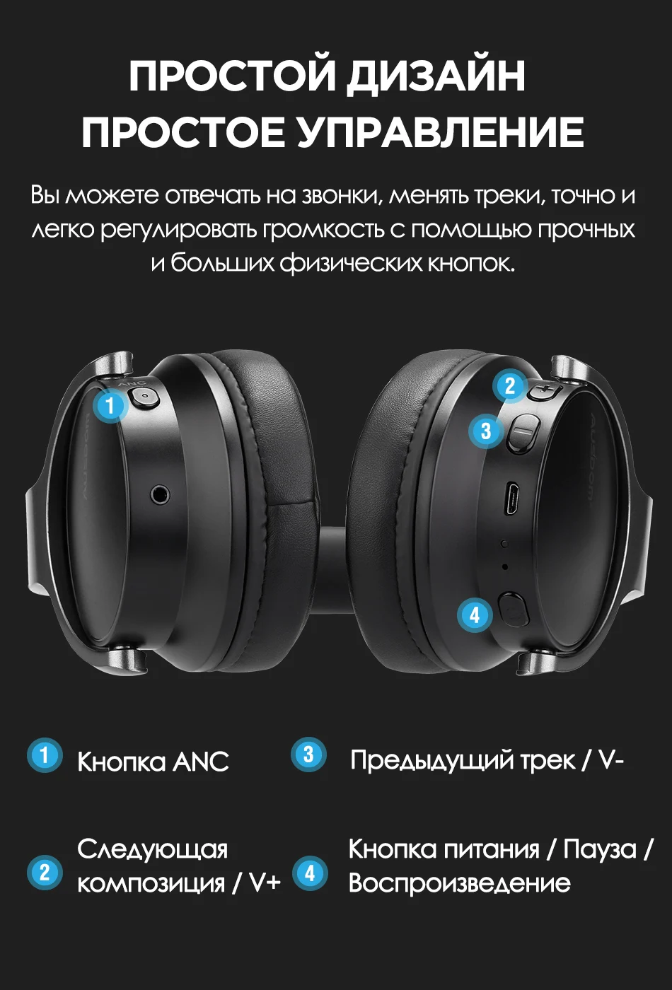 С литиевой батареей большой емкости, ANC8 может работать 20 часов в режиме Bluetooth. Аудиокабель 3,5 мм позволяет наслаждаться музыкой в любое время и в любом месте, не беспокоясь о перебоях в питании.
