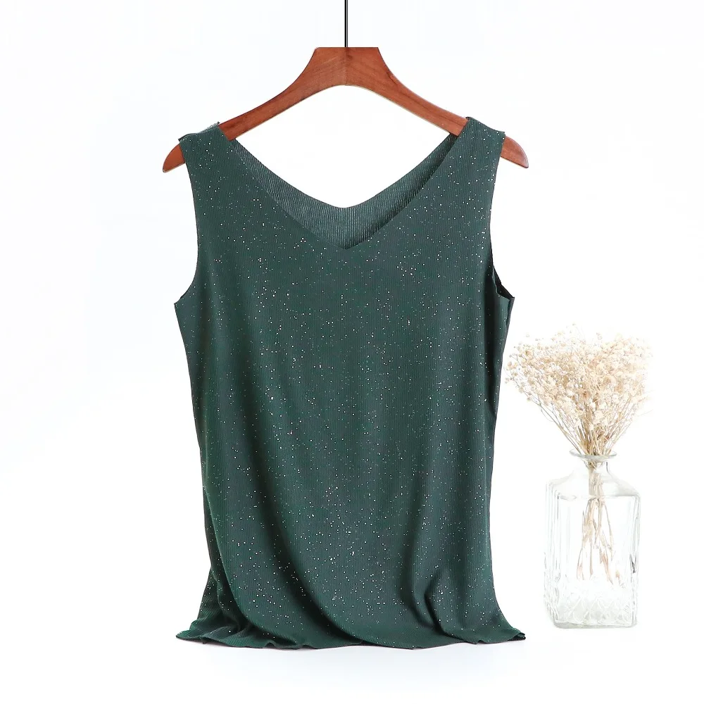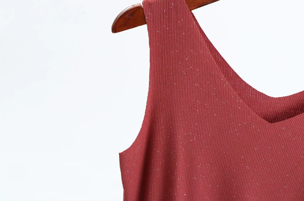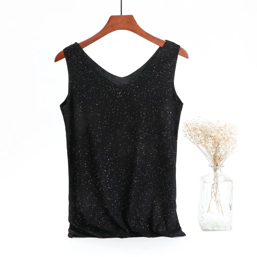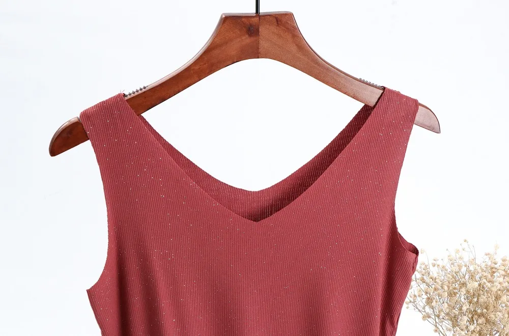 Блестящие майки хлопчатобумажная с люрексом, летние майки без рукавов с двойным V-образным вырезом, женский топ в рубчик, размера плюс Летняя женская рубашка, одежда