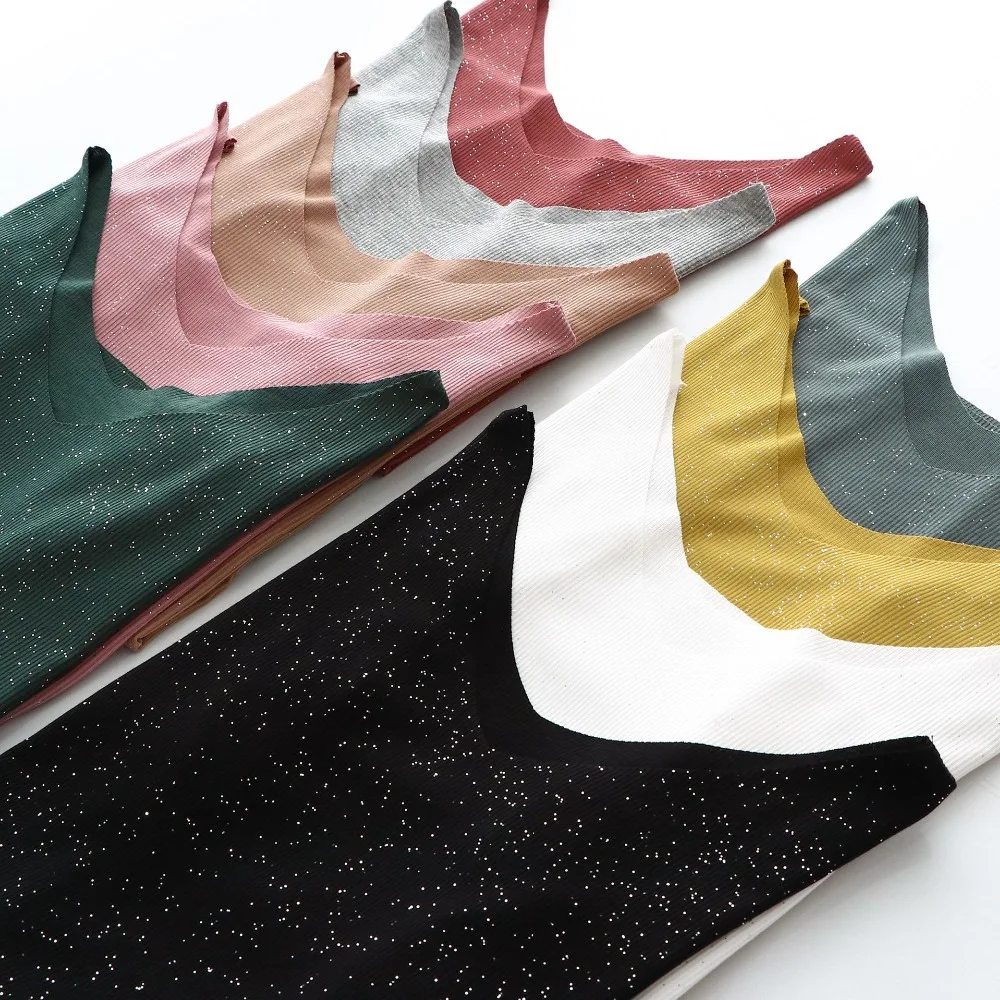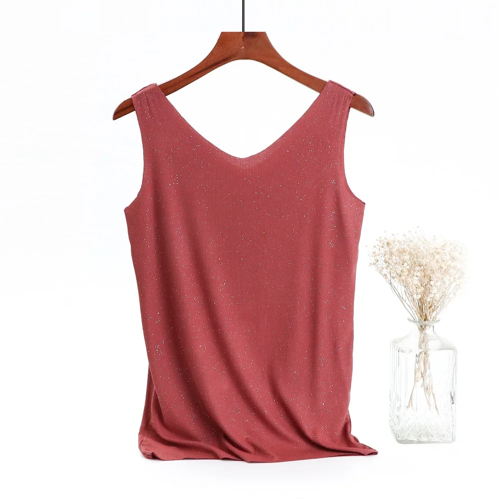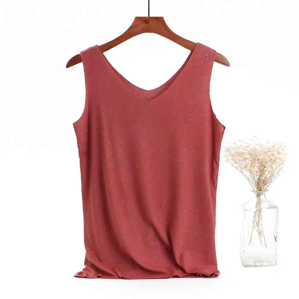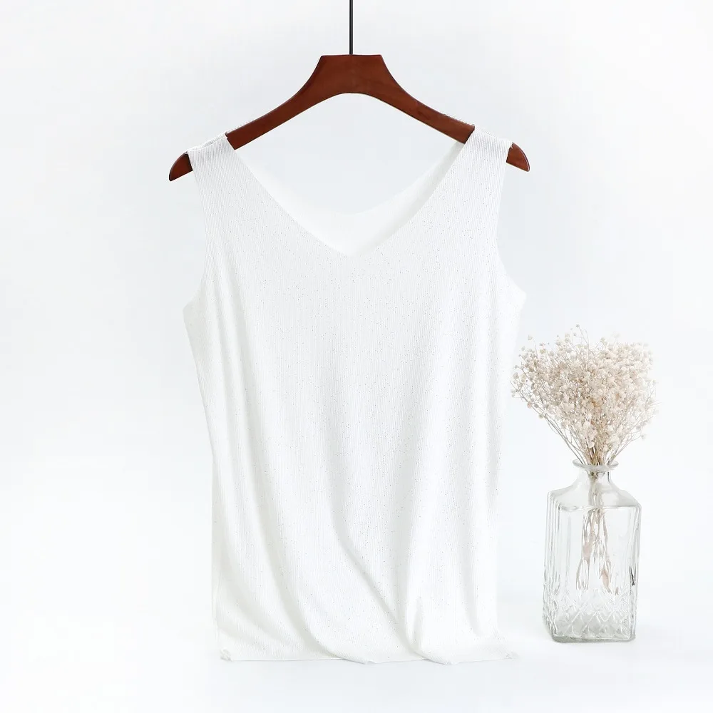 Блестящие майки хлопчатобумажная с люрексом, летние майки без рукавов с двойным V-образным вырезом, женский топ в рубчик, размера плюс Летняя женская рубашка, одежда