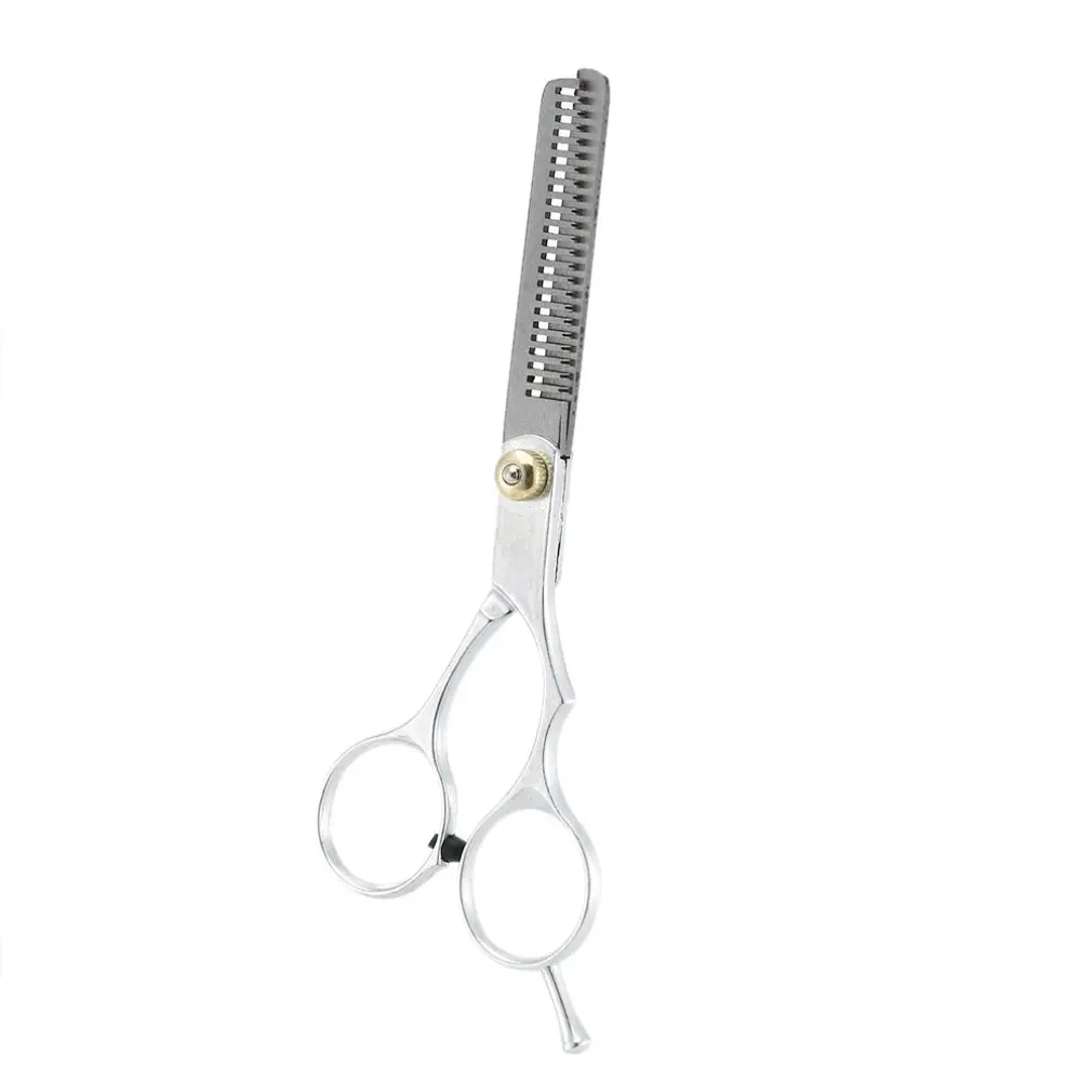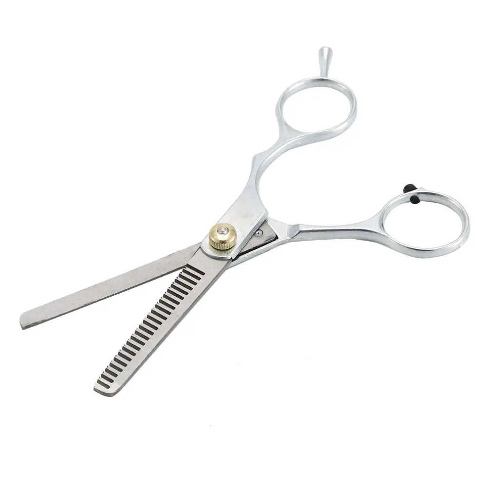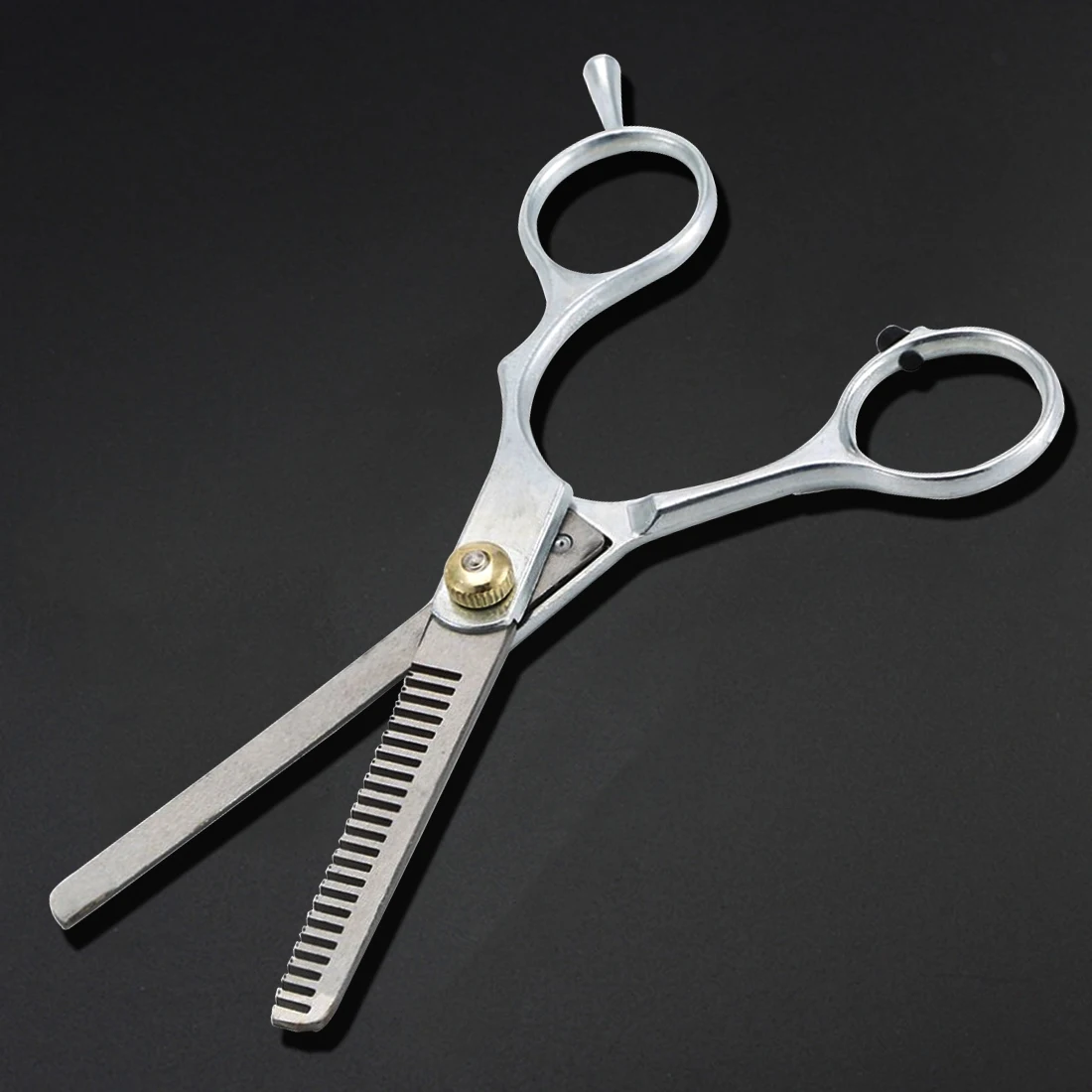 Особенности: 1. Профессионализм даже в отношении лезвий. 2. Подходит для парикмахера или семейного парикмахера. 3. Изготовлен из высококачественной нержавеющей стали, очень прочный. 4. С большим захватом лезвий. Описание: 1. Идеальный инструмент для парикмахеров. 2. Обе ножницы имеют Съемный палец. Характеристики: Материал: нержавеющая сталь Длина: 15 см (прибл.) Цвет: серебристый Тип: плоские ножницы, ножницы типа зуба Посылка включает в себя: 1 шт. ножницы для стрижки волос
