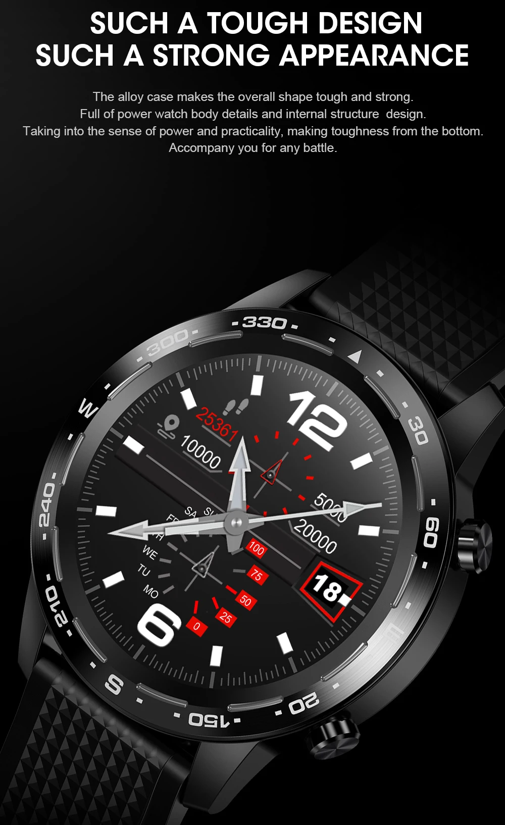 Чехол из сплава делает общую форму прочной и прочной Полный деталей корпуса часов и внутренней конструкции. Tang mo чувство энергии и практичности, делает ударопрочное от бота Сопровождение вас для любого сражения