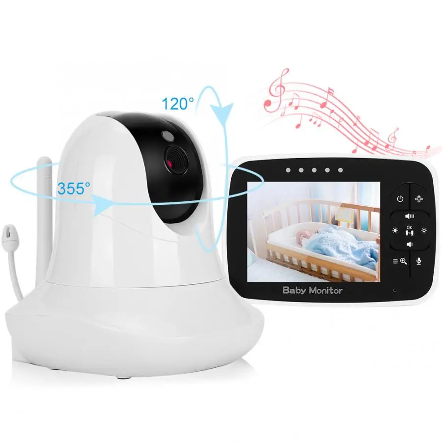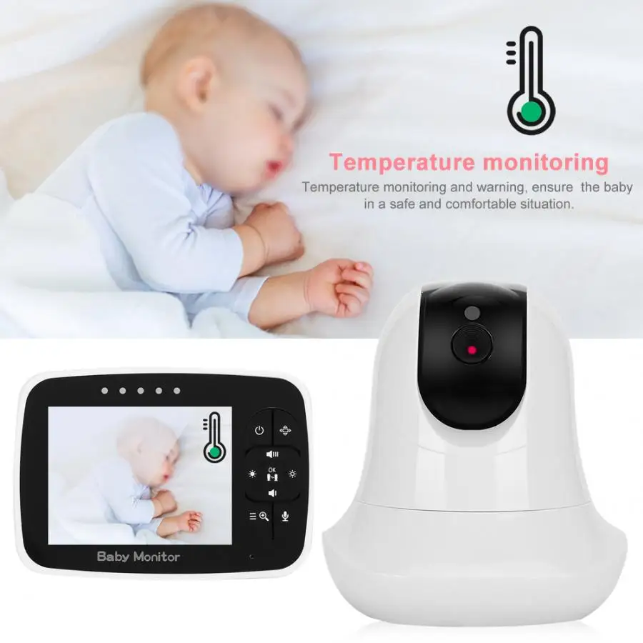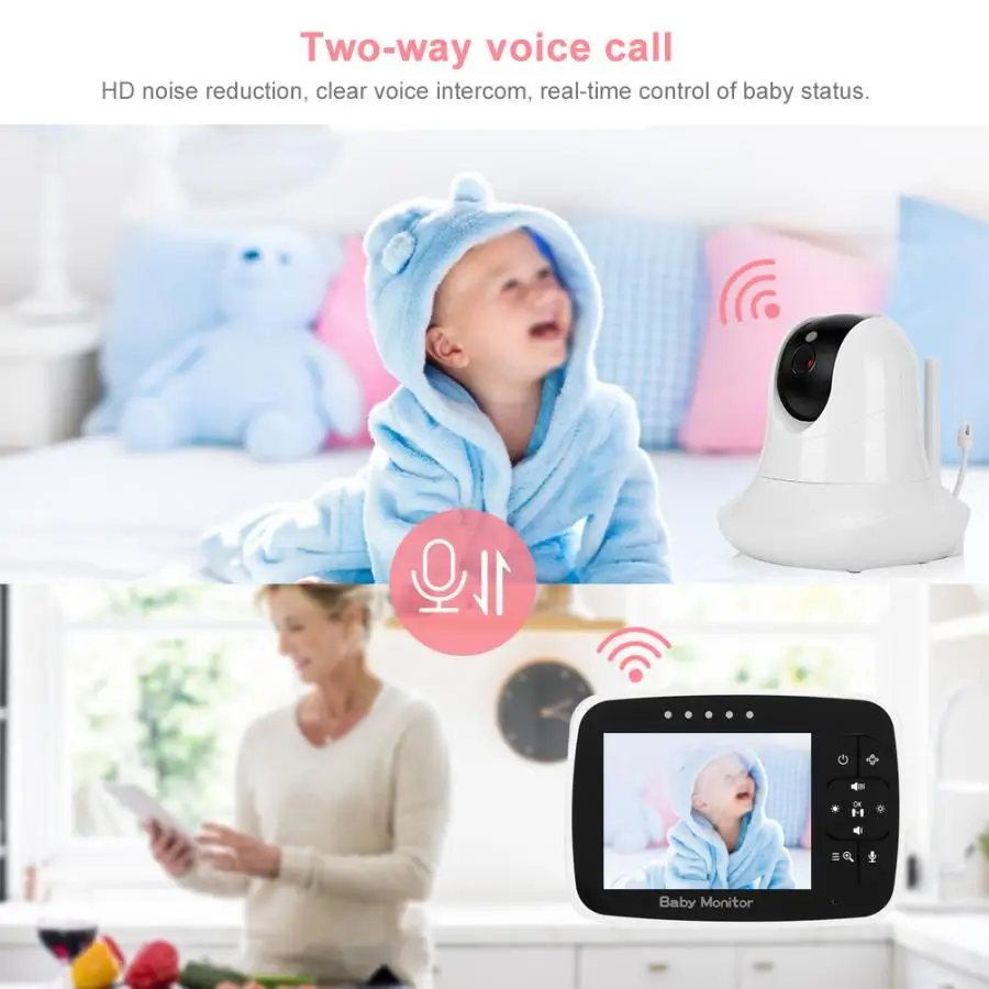 3.5 Inch PTZ Zoom Baby Monitor 2-Way Intercom Temperature Detection Night Vision Lullaby Camera EU 100-240V