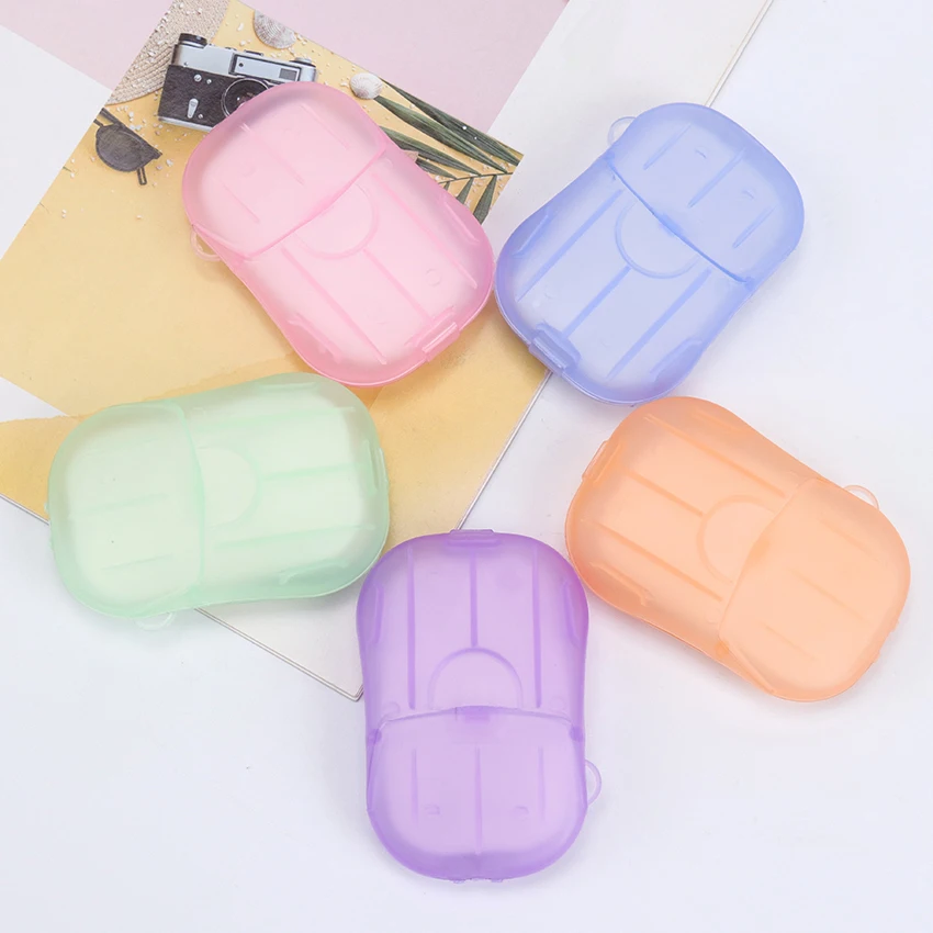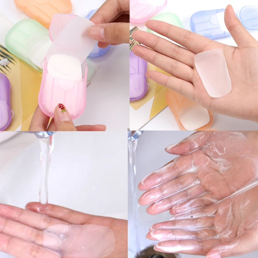 20PCS / Box Mini Portable Soap Paper Hand Soap Paper Wash Foam Travel Box Skin Care Nail Makeup Remover Soap Paper