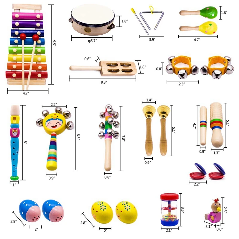 Превосходный Набор музыкальных игрушек, включающий 15 типов 23 шт. встряхивания, постукивания, избиения и выдувания инструментов с ритмическими, мелодичными и гармоническими звуками, поставляется с высококачественным милым рюкзаком для легкой очистки и хранения, яркие цвета и разный милый дизайн, который может повысить внимание и интерес детей, Помогите им выучить звуки и тонизирует разные инструменты делают и раскроют их музыкальное творчество!