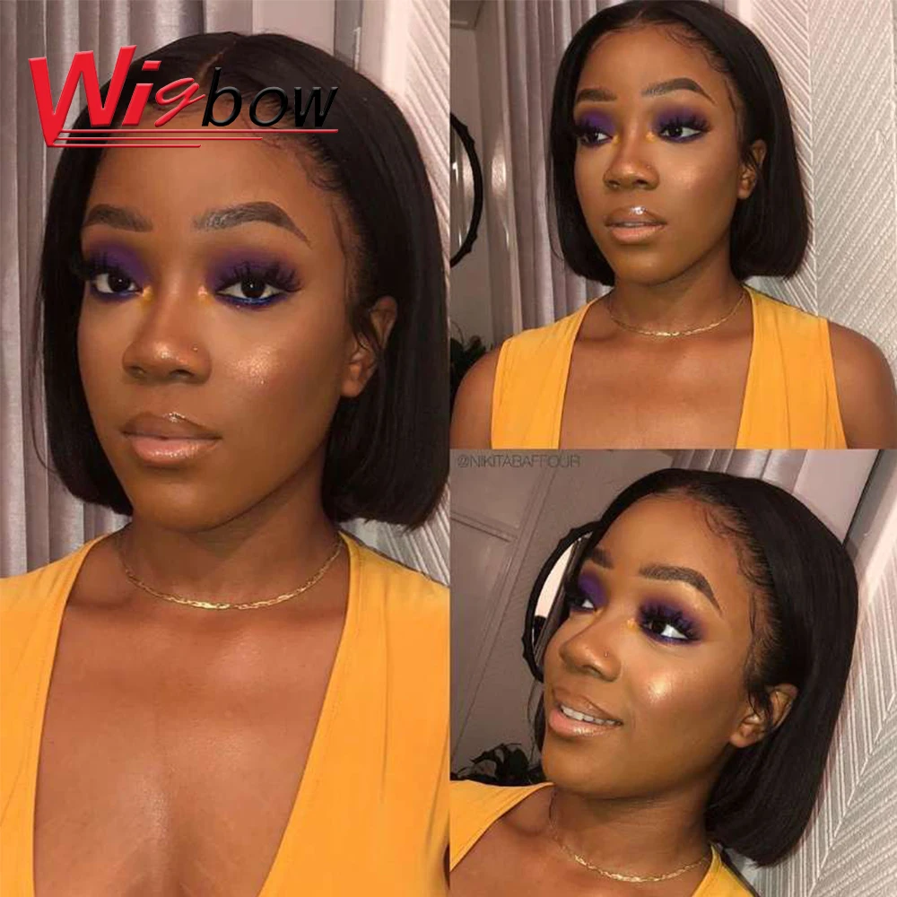 Короткие бразильские человеческие волосы парики для черных женщин прямые боб парик L часть коричневый парик шнурка дешевые человеческие волосы парик Бесплатная доставка