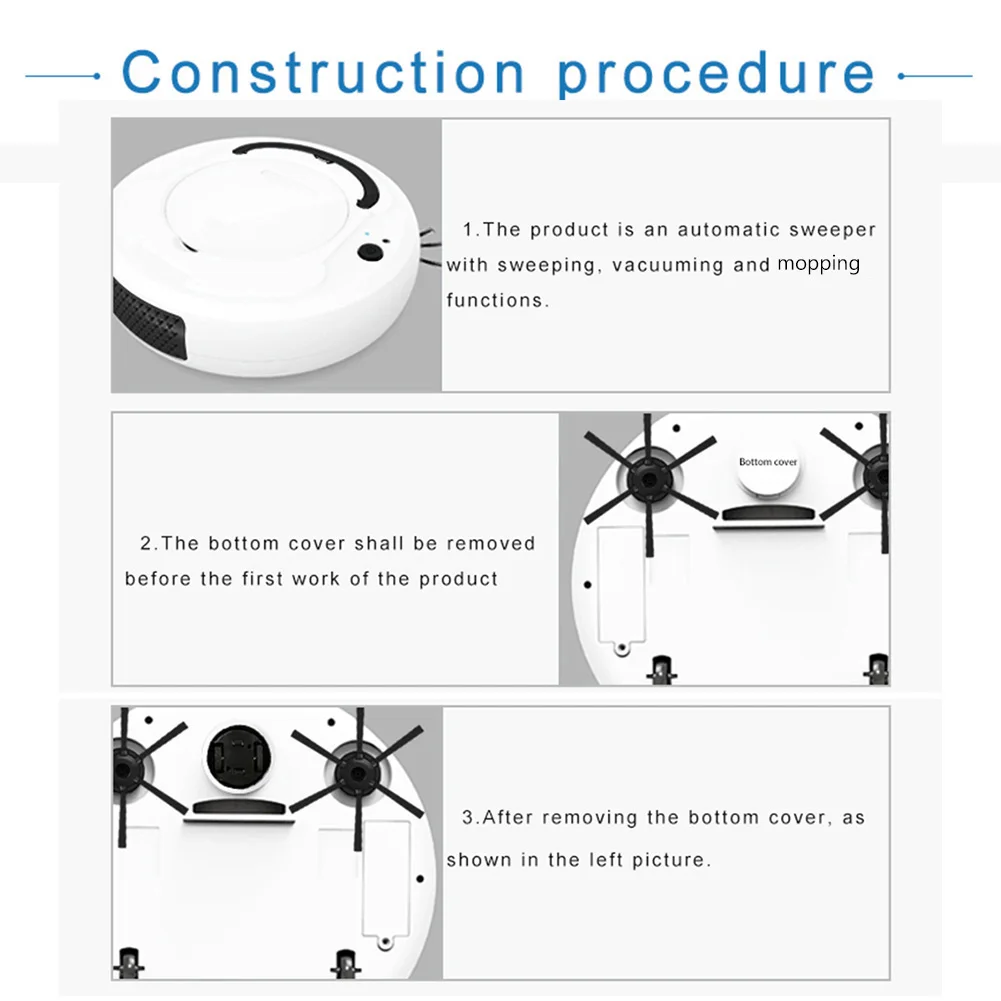Функции: запуск одной кнопкой, подметание, Мытье полов, пылесос, зарядка через USB, универсальное вождение, автоматическое Предотвращение препятствий, защита от падения, низкий уровень шума, сильное всасывание, низкое повторение, высокий охват