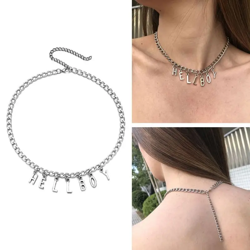 Панк Стиль буквы Кулоны "Хеллбой" колье для женщин модные вечерние колье Модные украшения в стиле унисекс