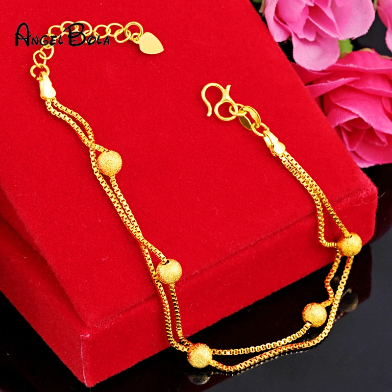 24k позолоченный браслет из бисера модные очаровательные двойные аллювиальные золотые браслеты для женщин высокое качество регулируемый браслет не выцветает