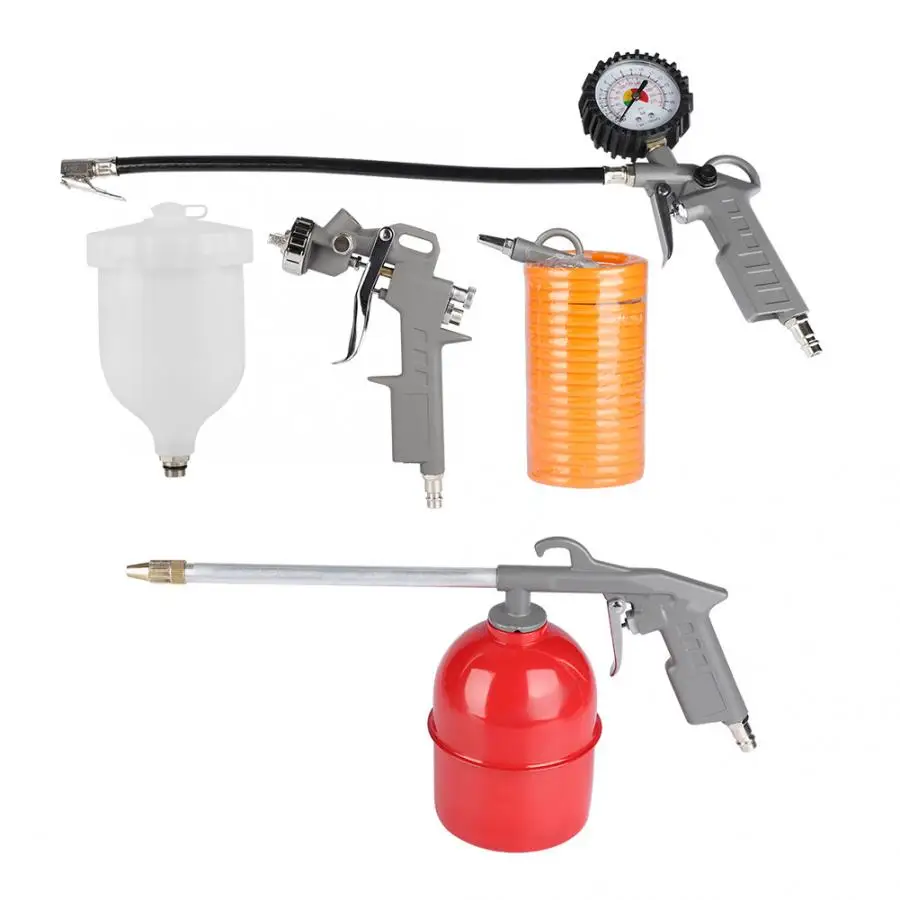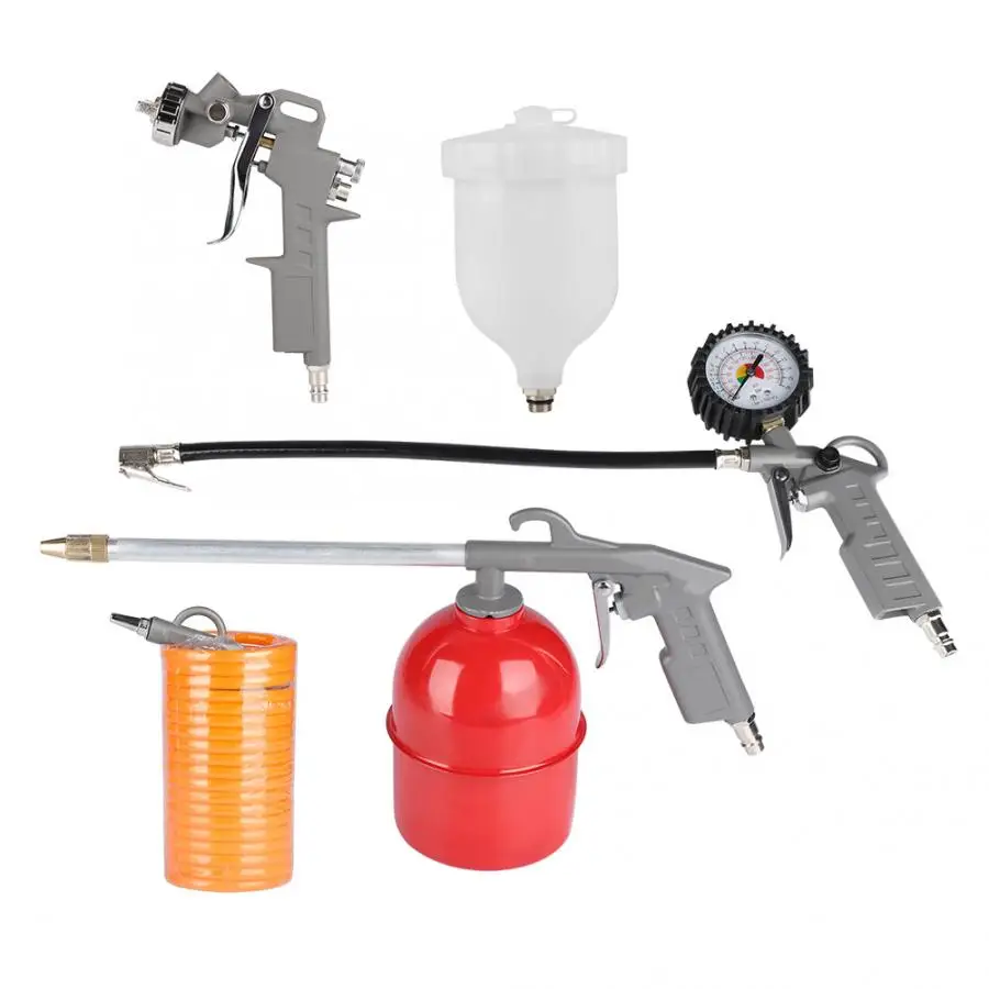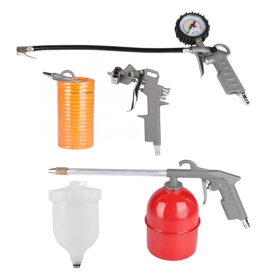 Этот воздуха Набор инструментов включает в себя гравитационный пистолет-распылитель, пистолет-удар, накачиватель шин с давлением Калибр, пистолет для очистки воздуха и воздушный шланг 5 м. Он имеет широкое применение и сильный Практичность.