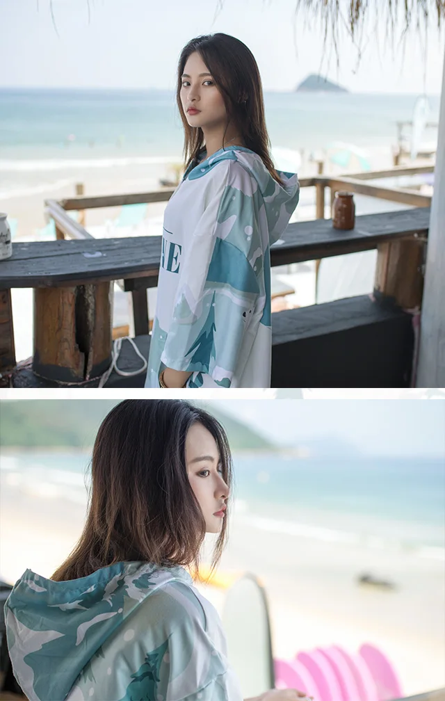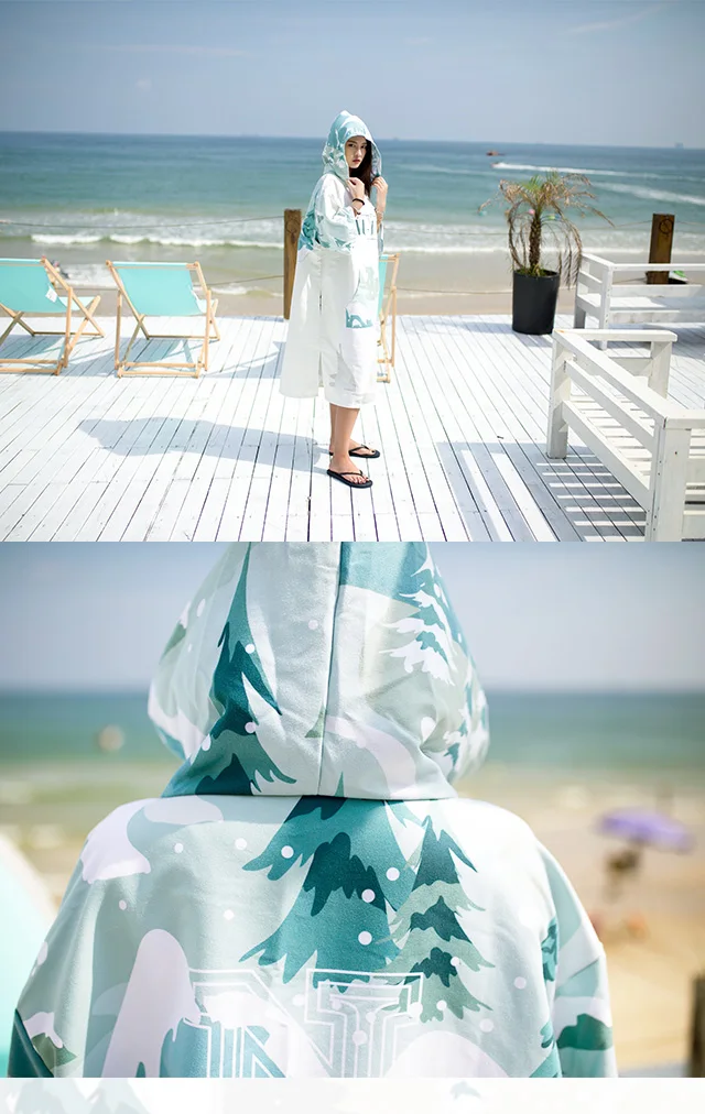 Nu-June халат из микрофибры для женщин и мужчин купальный халат для дайвинга банное полотенце с принтом пляжное пончо с капюшоном