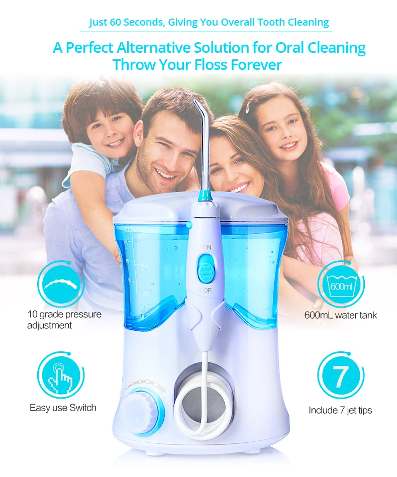 Многофункциональный ирригатор для полости рта, 600 мл, набор по уходу за зубами очиститель зубов, выбор воды с 7 насадками