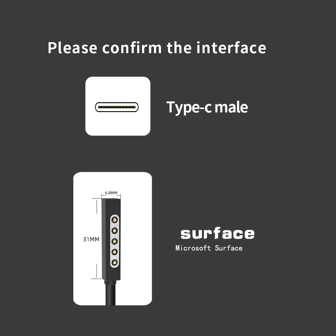 Зарядный кабель типа C для Microsoft Surface 1/ 2
