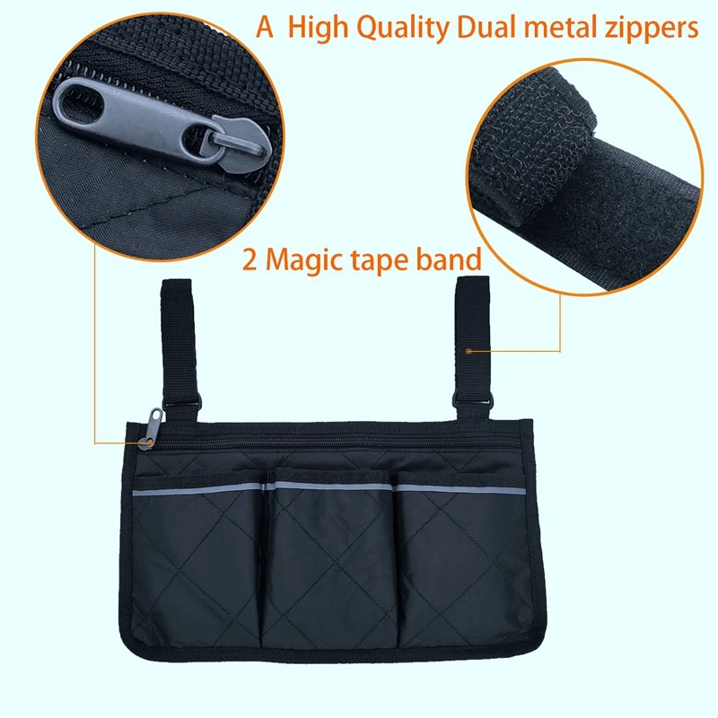 Универсальный-боковые сумки сделаны для установки на широких транспортных устройствах, включая rollator, электрические ручные инвалидные коляски, ходунки, скутер для подвижности и многое другое. Идеально подходит для подлокотника инвалидной коляски.