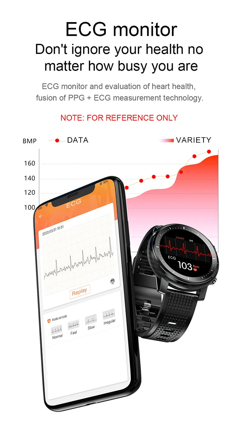 Контроль ЭКГ и оценка здоровья сердца, сочетание технологии PPG + измерение показателей ЭКГ.