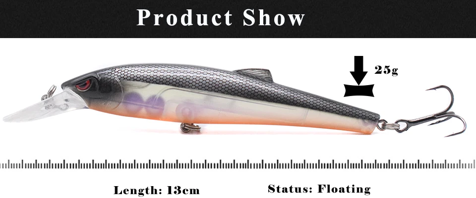 CCLTBA Minnow рыболовная приманка 13 см 25 г, плавающая большая игра, гольян, приманка для глубокого погружения, блесна для губ, приманка для жесткой рыбалки