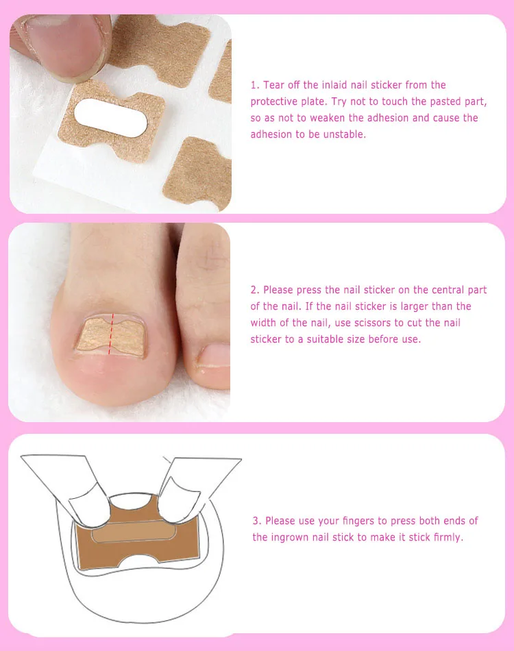 2. Пожалуйста, нажмите на наклейку для ногтей на центральной части ногтя. Если наклейка для ногтей больше, чем ширина ногтя, перед использованием используйте ножницы, чтобы разрезать наклейку для ногтей до подходящего размера.