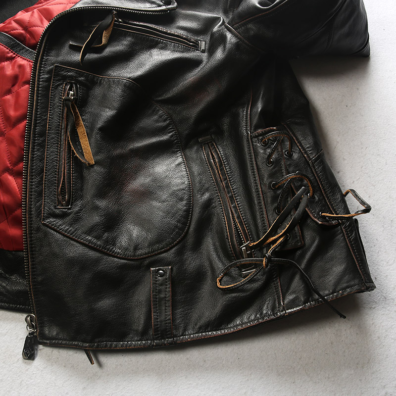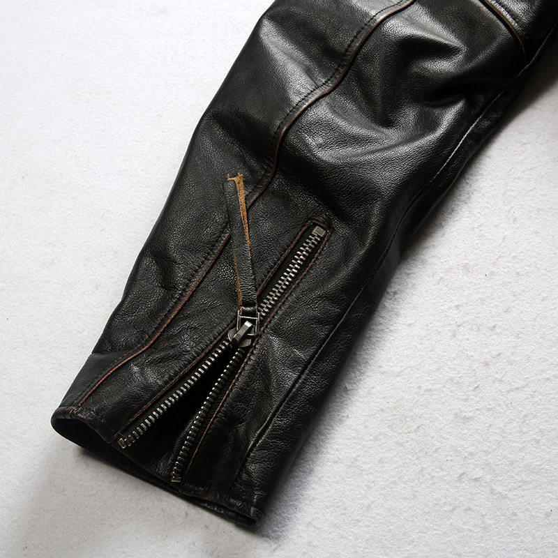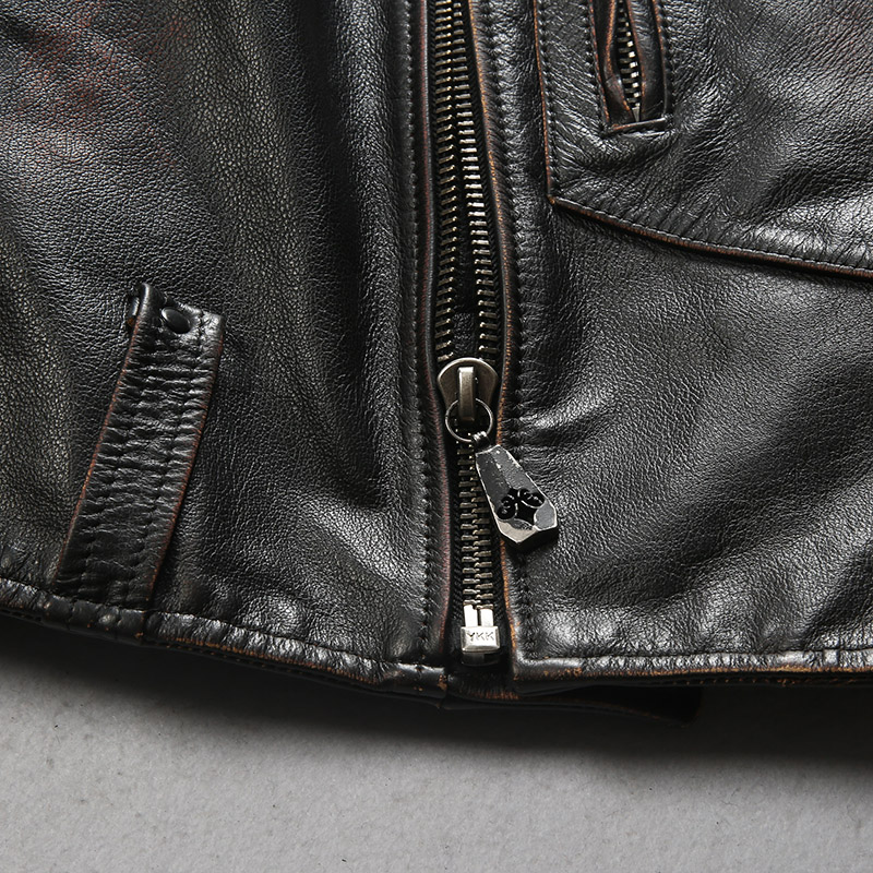Новинка 2020, винтажная коричневая Мужская мотоциклетная кожаная куртка, диагональная молния, Натуральная Воловья кожа, приталенная, американская мотоциклетная куртка
