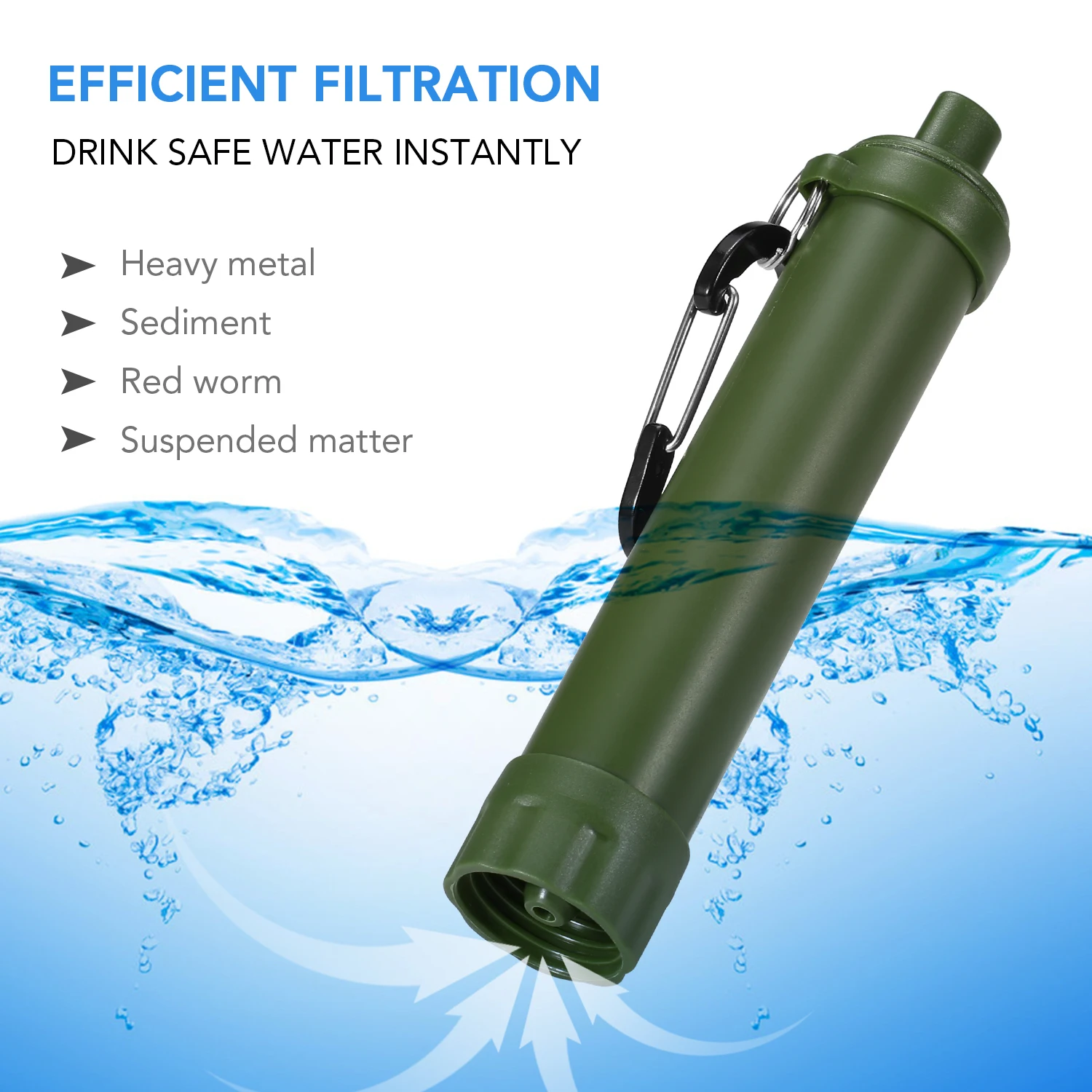 This water filter straw can effectively remove the bacteria in the water to provide clean, safe water. Its multifunctional design with signal mirror, whistle, compass makes the water filter straw a perfect survival equipment for outdoor emergency, camping, hiking, backpacking, etc.
