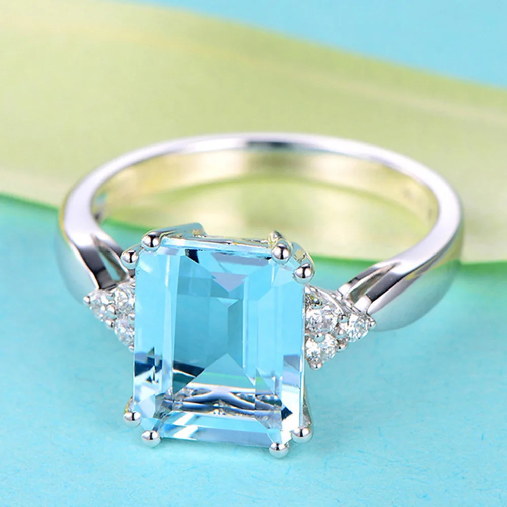 Женское Ювелирное кольцо Anillos Yuzuk, кольцо из серебра 925 пробы с аквамариновым камнем, кольцо из настоящего серебра 925 пробы