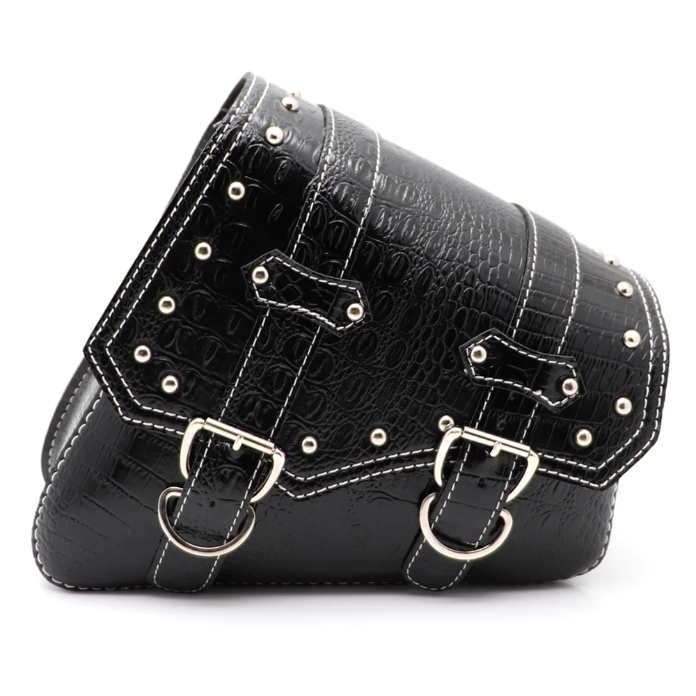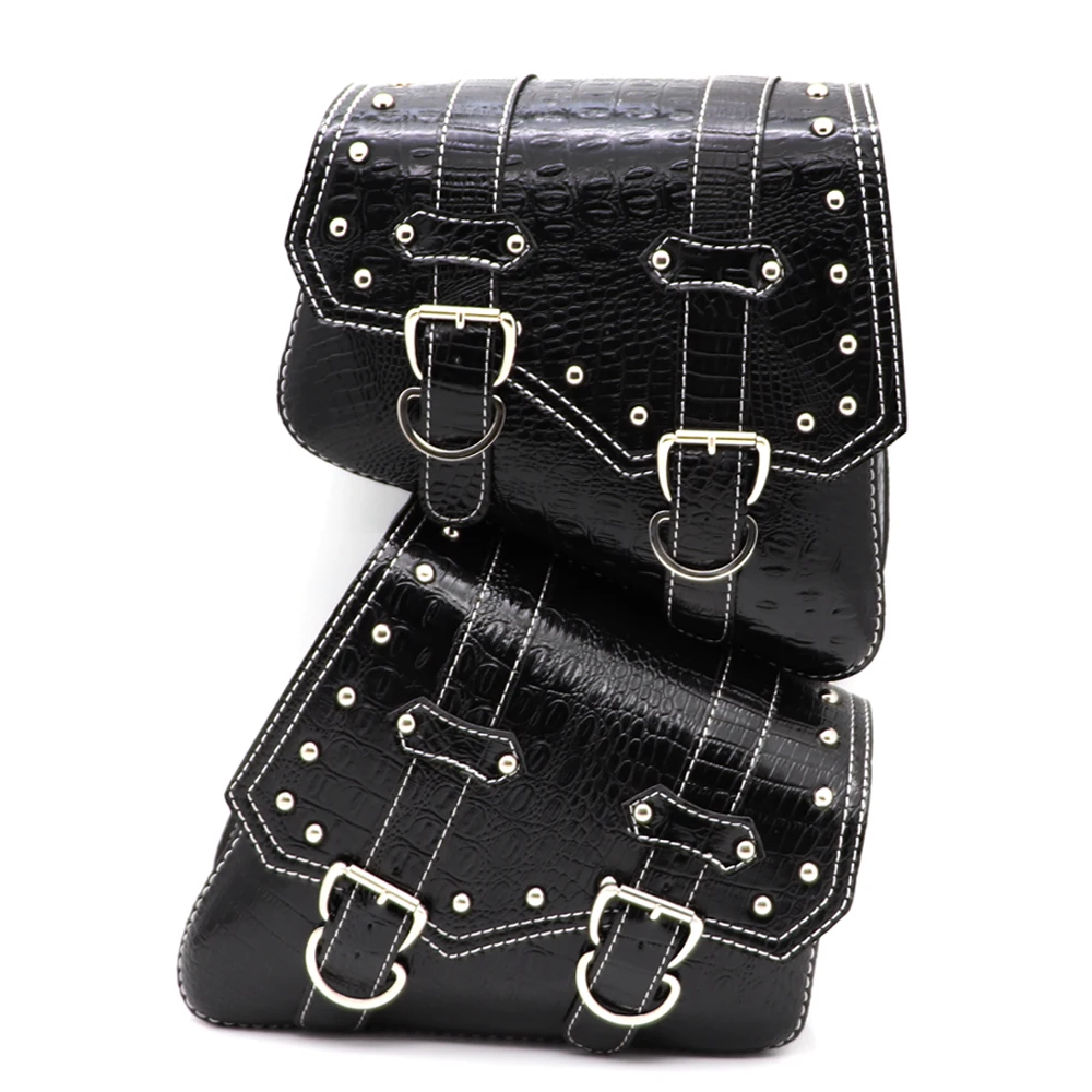 Descriptions Condition: 100% Brand New Material: PU Leather Placment On Vehicle: Left ,Right Size: As picture Show Color: black Features: 1. This Motorcycle Side Bags enough store your necessary item without hampering riding experience. 2. This Bags come with 3 upgragde leather mounting straps with buckles . 3. This Bags Made Of Hight Quanlity PU Leather , features waterproof and durable ,extra side flaps keep rain out. 4. Compatibility with Motorcycle With Swingarm Or Motorcycle Frame, Such As for Harley-Davidson sportster Softail Honda Shadow Yamaha and So on. Fitment: For Harley Davidson Sportster XL883 XL1200 ,and also for motorcycle with swingarm or frame, such as HD Sportster Softail Street, Honda Shadow, Yamaha and so on... Package Inclued: 2 x Saddlebag ( One Left Side + One Right Side) or one side