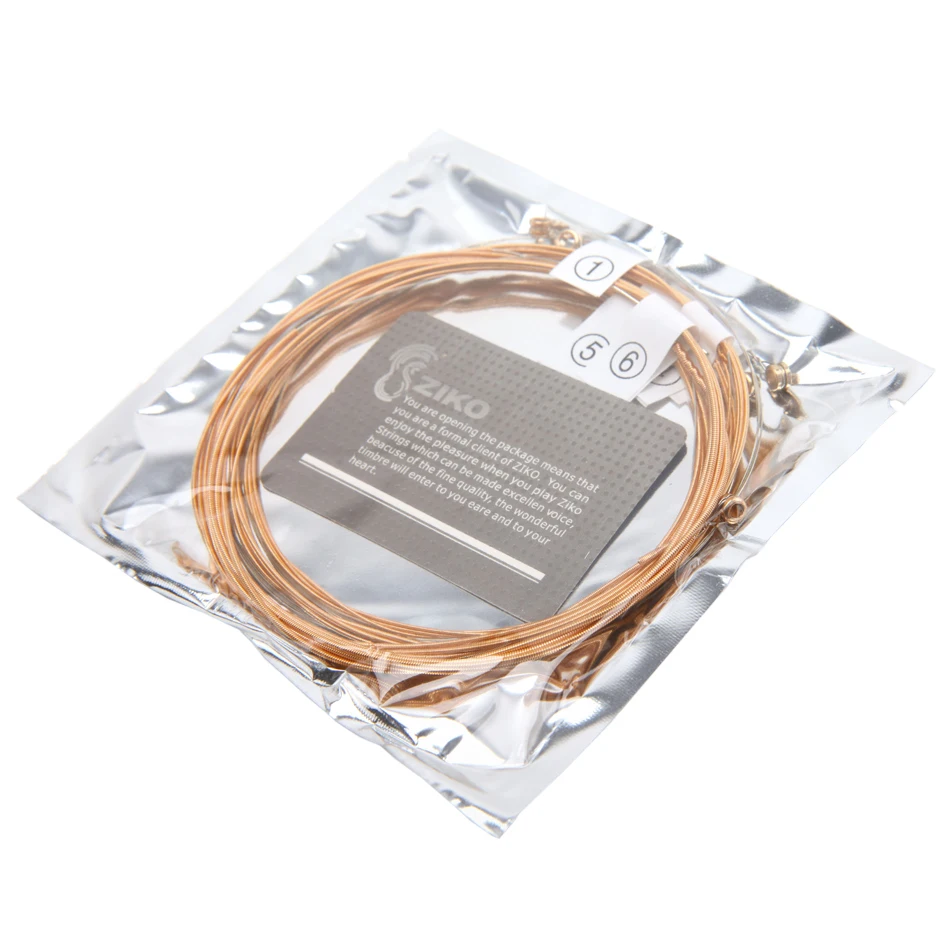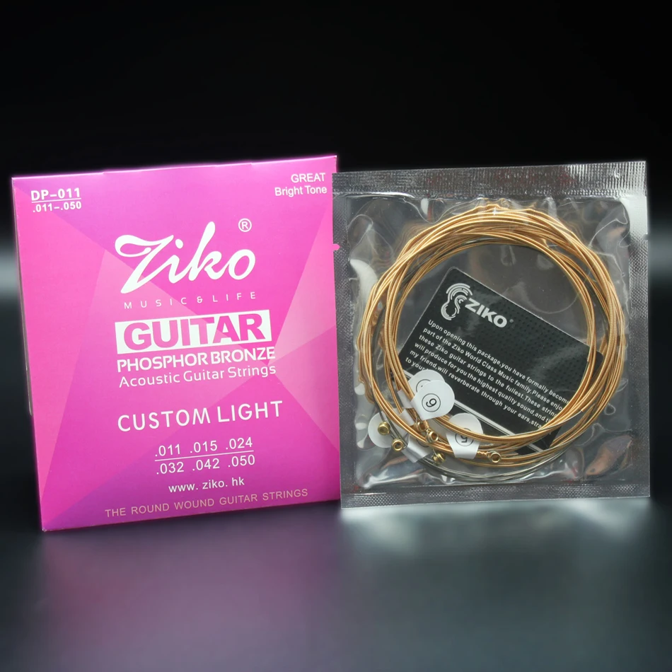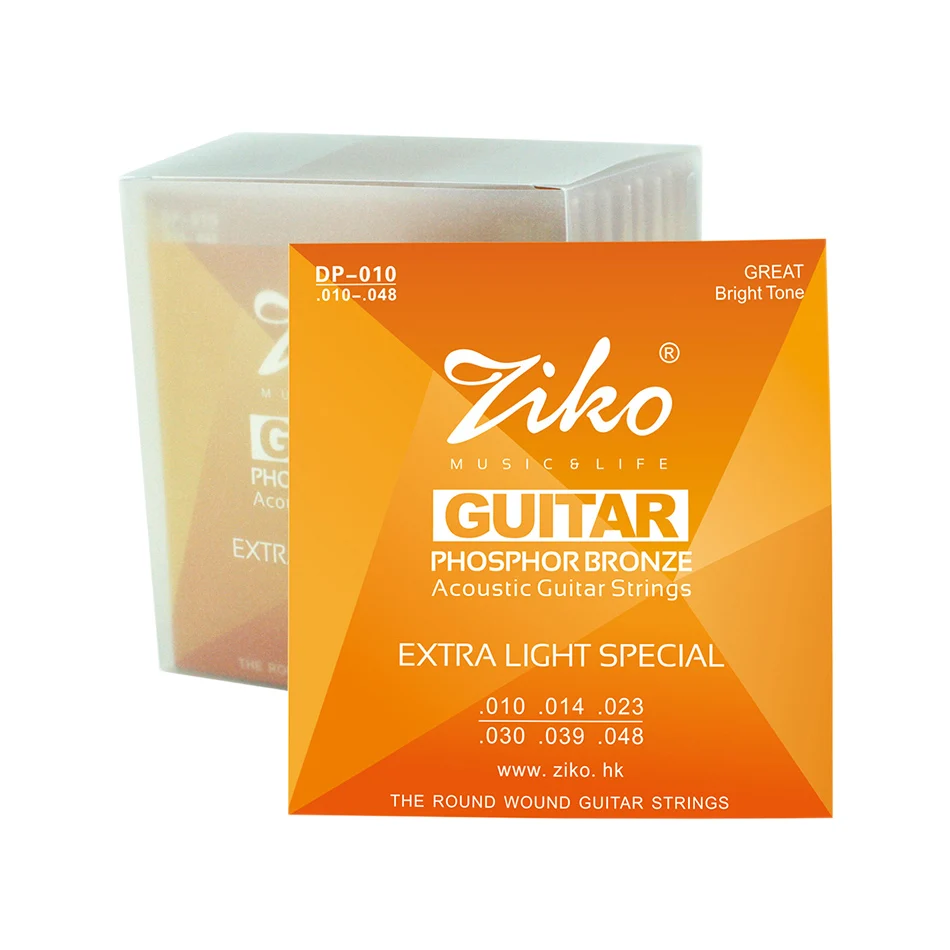 ZIKO DP Series 1 Set of Acoustic Guitar Strings 1st-6th 010-048,011- 050,012-053 Inch Hexagon Alloy Core Phosphor Bronze Wound