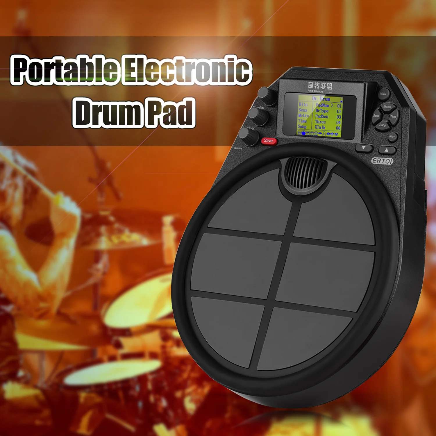 15 ударных наборов, макс. 81 звук, встроенные 59 демонстраций, вы также можете воспроизводить внешнюю MIDI-музыку, подключив U-диск к барабанной колодке. Наслаждайтесь удовольствием от игры на барабане.