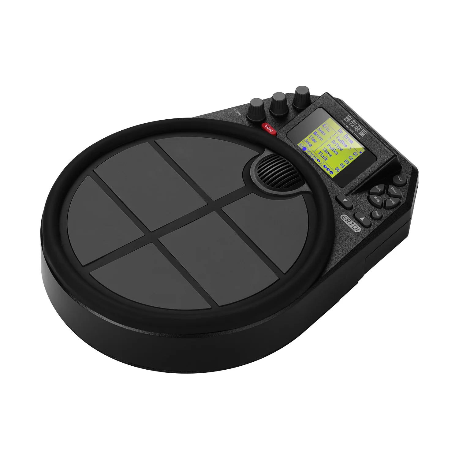 6 накладок соответствуют Snare, Hat, Tom1, Tom2, функциям удара, езды, а тип, чувствительность, порог, перекрестные помехи, перекрестные помехи и громкость каждой накладки можно регулировать индивидуально.