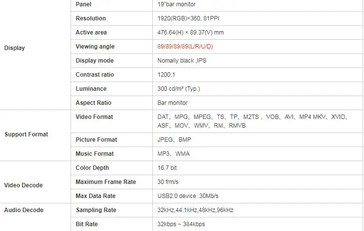 Спецификация 19,1 дюймового монитора