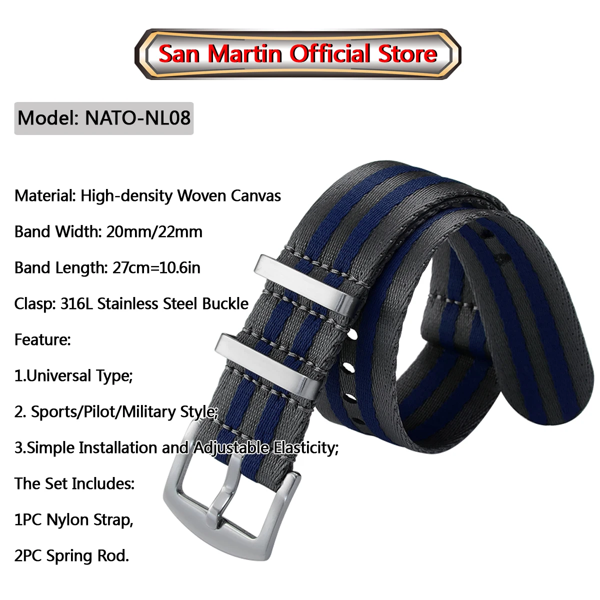 Тканый холст высокой плотности, Пряжка из нержавеющей стали 316L