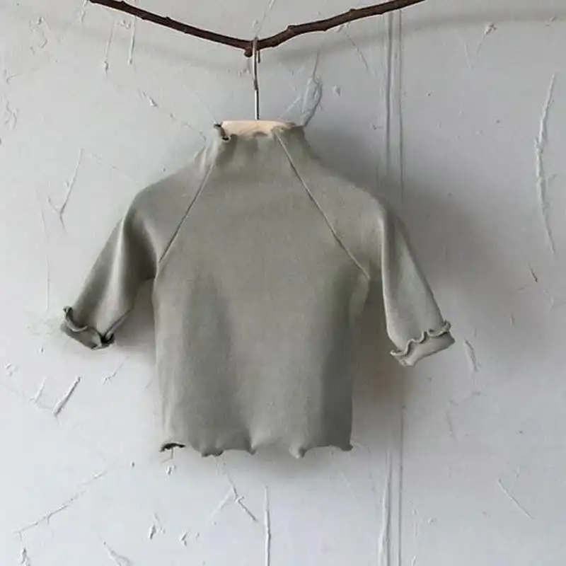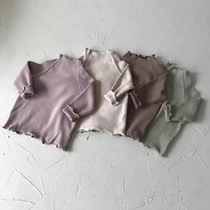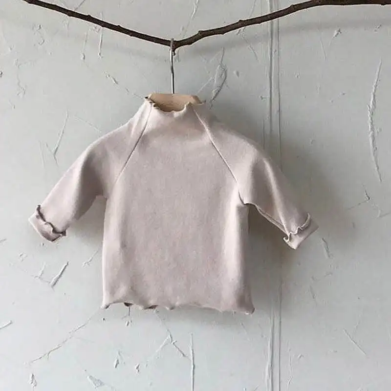 Корейская весенне-осенне-зимняя хлопковая Футболка с воротником под горло для младенцев и маленьких детей Однотонная рубашка с грибком для мальчиков и девочек