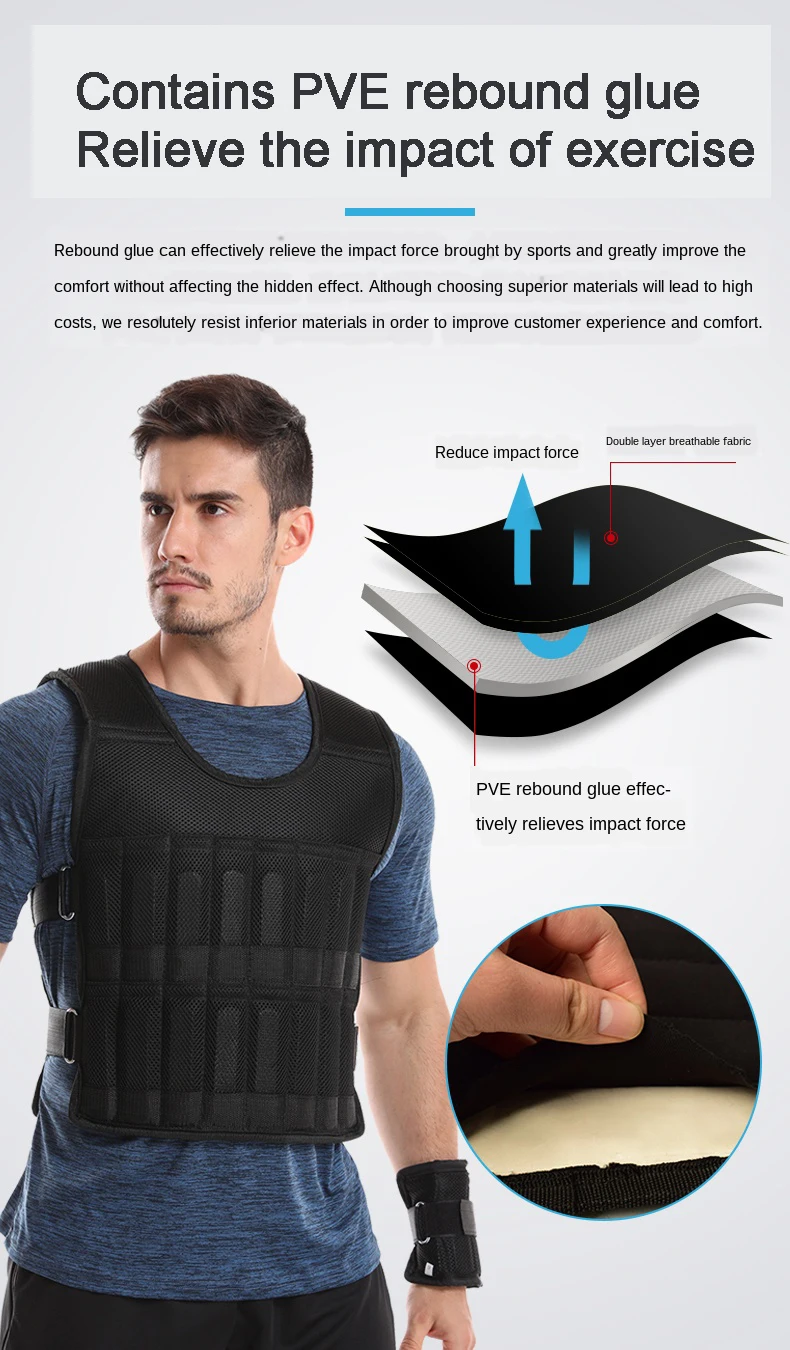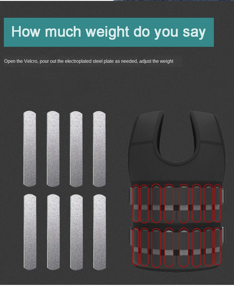 Особенности: Изготовлен из плотной ткани Оксфорд высокой плотности, прочный в использовании. С расширяющимся плечом, удобно носить. Высокогибкий PVE rebound клейкая подкладка, для защиты и амортизации. С 16 пакетами для загрузки песка или стальной пластины (не входят в комплект). Это идеальное оборудование для физической подготовки, похудения и подвижных упражнений. Технические характеристики: Цвет: черный Материал: дышащая нейлоновая сетка Максимальная загрузка: 12 кг Вес (пустой): 400 г Посылка список: 1 * регулируемый взвешенный жилет (Пустой)