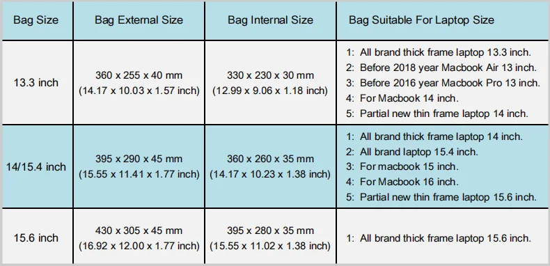 2: пожалуйста, не стесняйтесь связаться с нами, если вы не уверены, какой размер сумки подходит для вашего ноутбука.