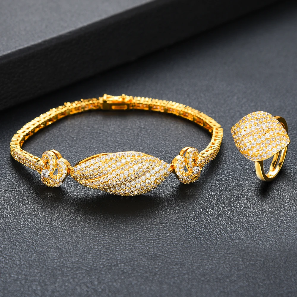 100% 18 К золото/белое золото покрытый свадебный ювелирный набор для женщин AAA CZ имитация бриллианта обручальный ювелирный набор
