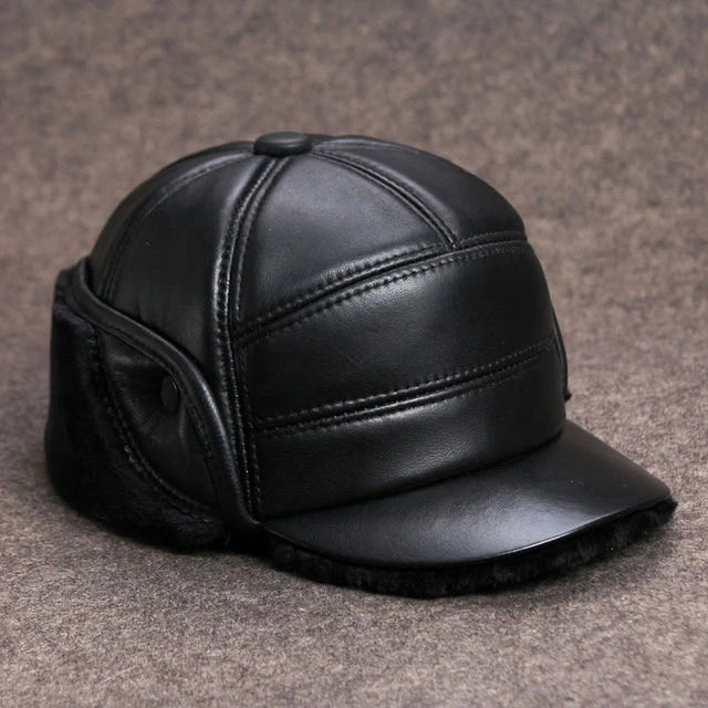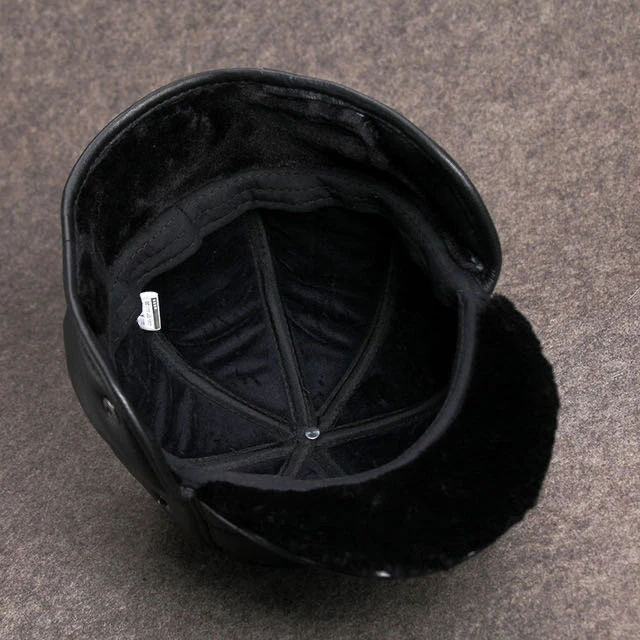 Сезон весна-зима; Натуральная кожа; Замшевая шапка-бомбер; Мужская и женская обувь из нубука с толстой головкой; Теплые домашние шапки; Цвет Черный; Прошитые облегающие шапки