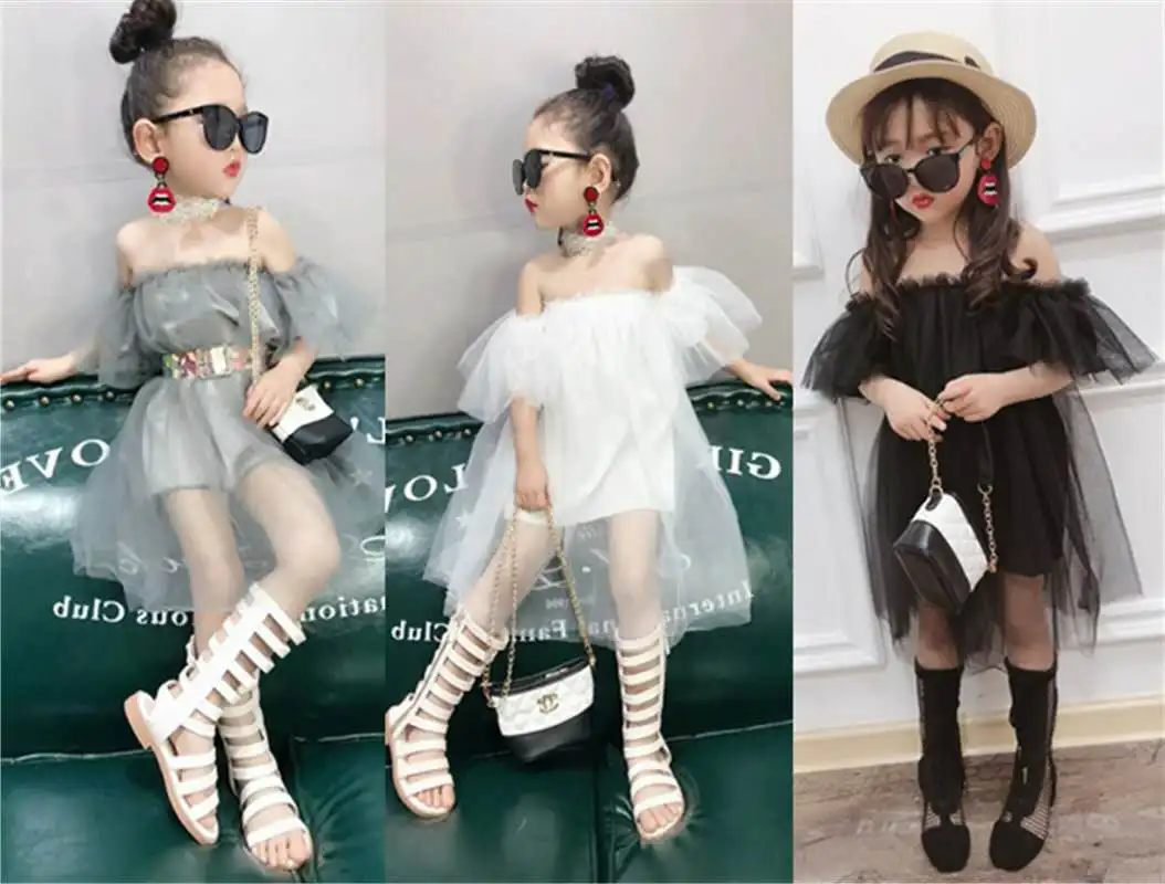 Юбка для девочек, сетчатая юбка без бретелек с обхватом груди, юбка феи, летняя Новинка 2020, детская одежда, От 3 до 9 лет