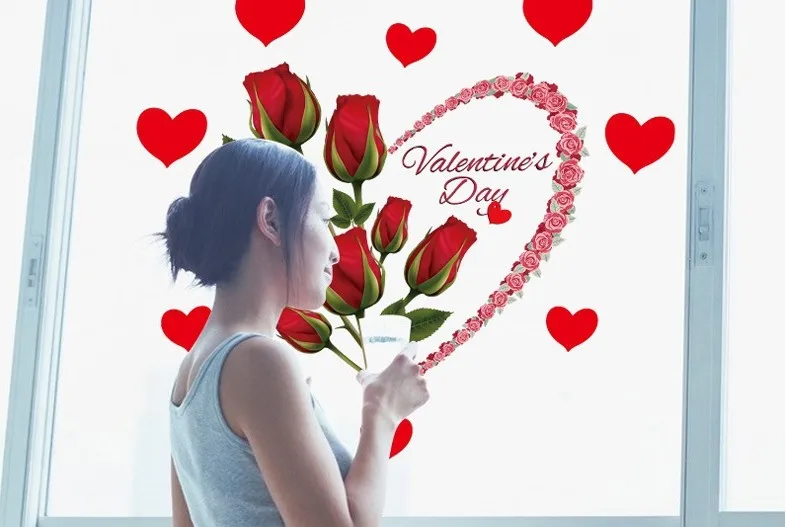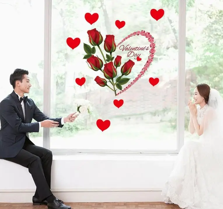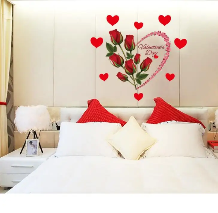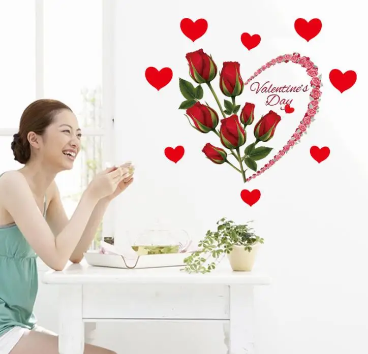 Романтические наклейки на стену с красными любящими сердечками и розами для домашнего декора, украшения для гостиной, спальни, наклейки на стену