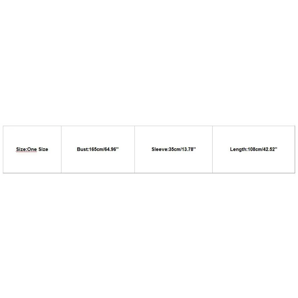 Размеры Обхват груди Рукава Длина Один размер 165 см/64,96'' 35 см/13,78'' 108 см/42,52''