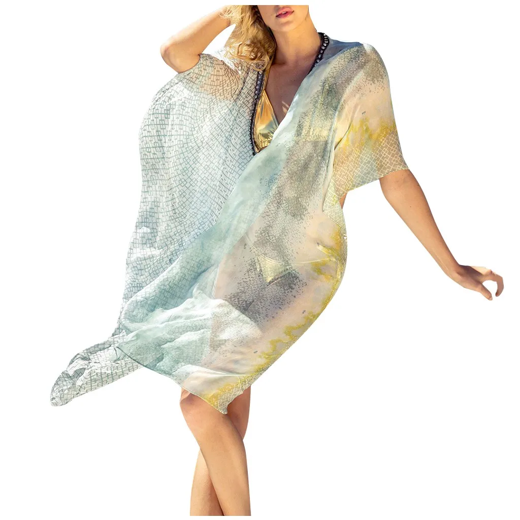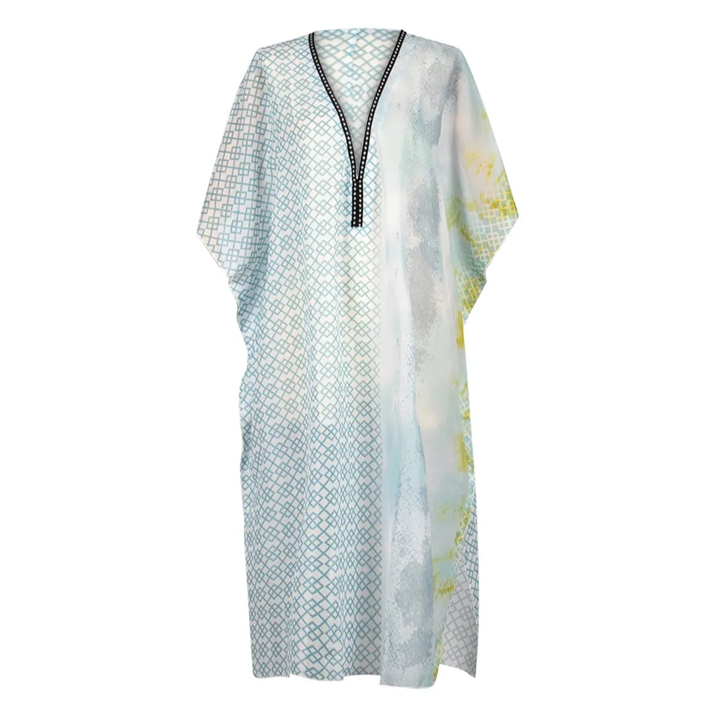 3. V-образный вырез, длинный Рукав, высокая талия, разрез сбоку, шифоновое пляжное платье,Очаровательнее и привлекательнее. Простой, но модный. Свободный крой. Предупреждения Кожа Повреждение при игре на пляже.