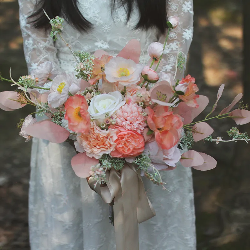 Коралловый оранжевый искусственный цветок Свадебный букет лужайка естественная Свадебная церемония Свадебные украшения шелковые цветы