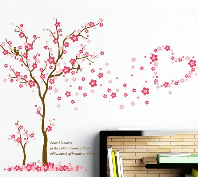 Красивые цветы Сакура любящие наклейки на стену в форме сердца украшения для гостиной спальни ПВХ съемные обои DIY наклейки для дома искусство