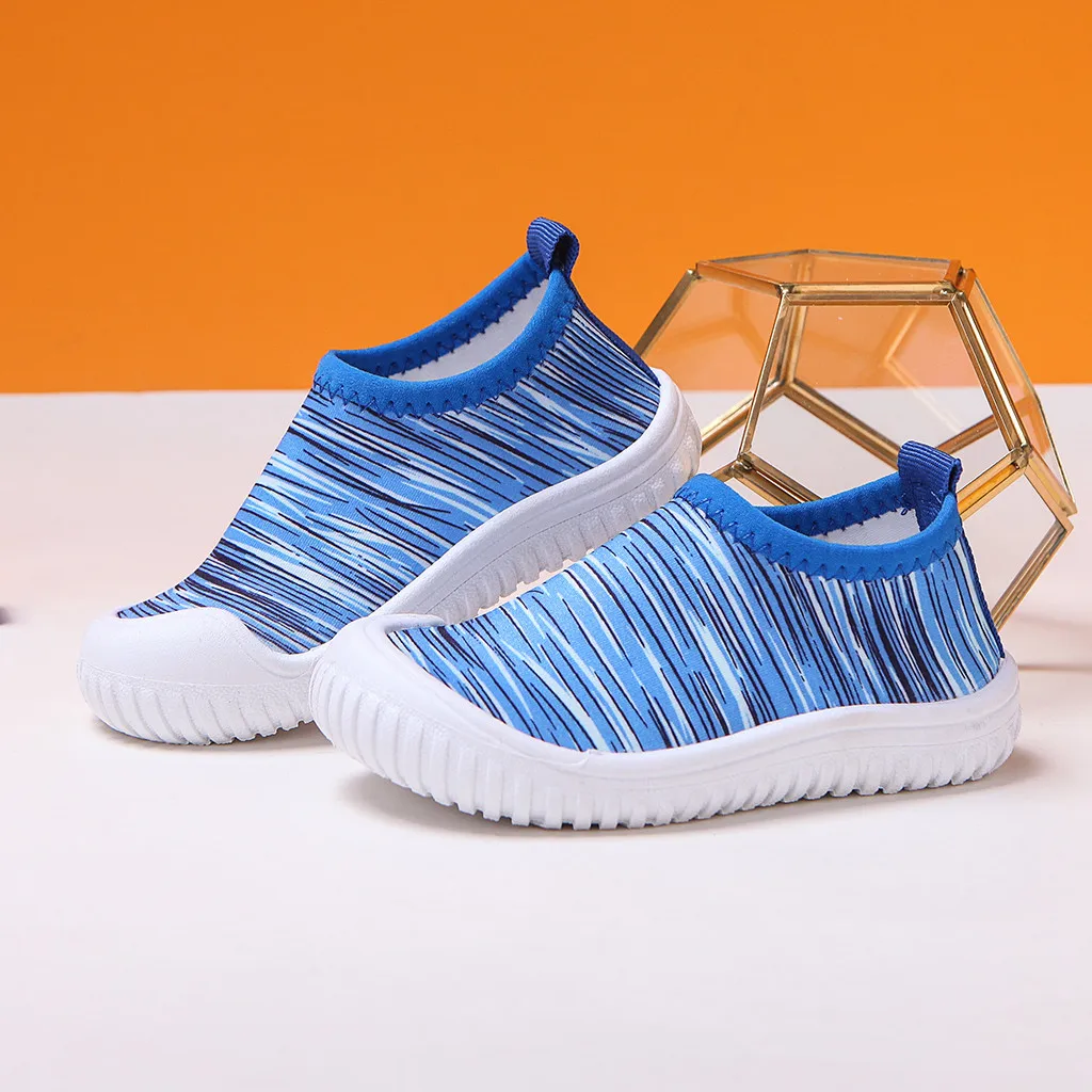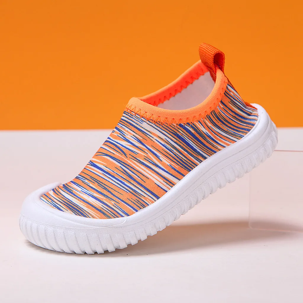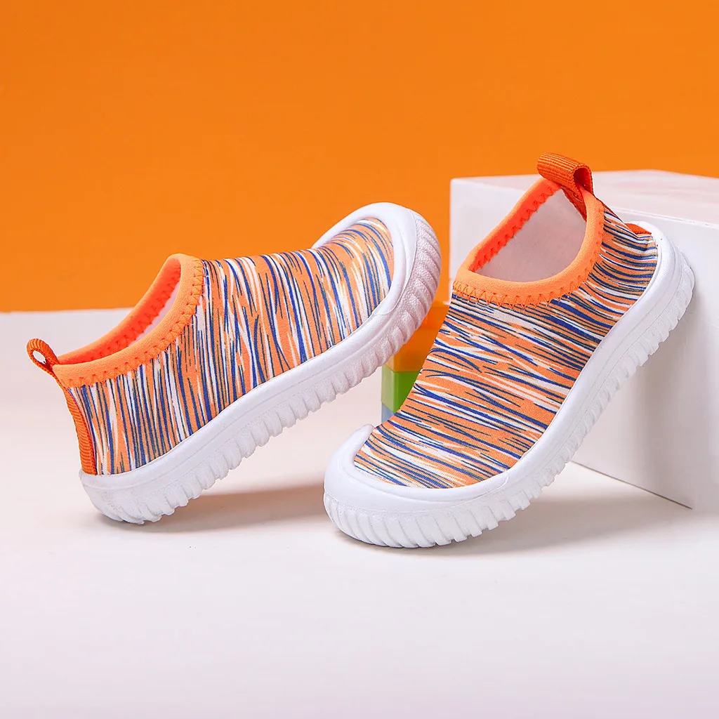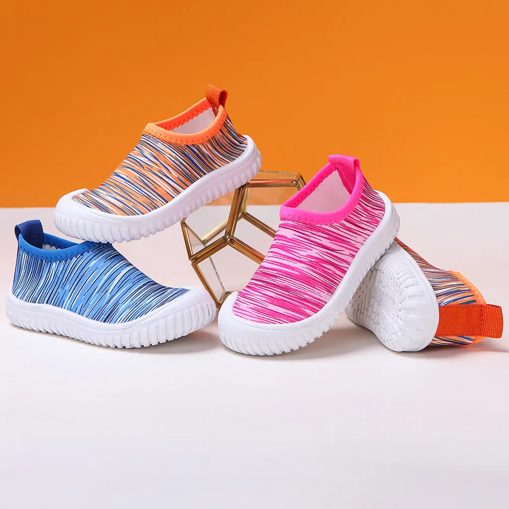 Летние полосатые кроссовки без шнуровки для маленьких мальчиков и девочек
