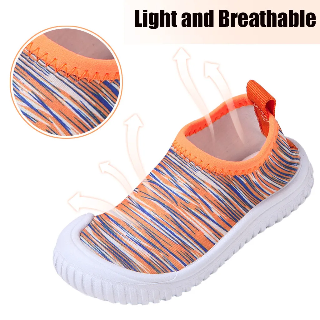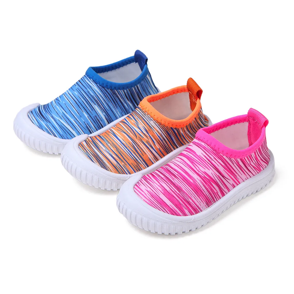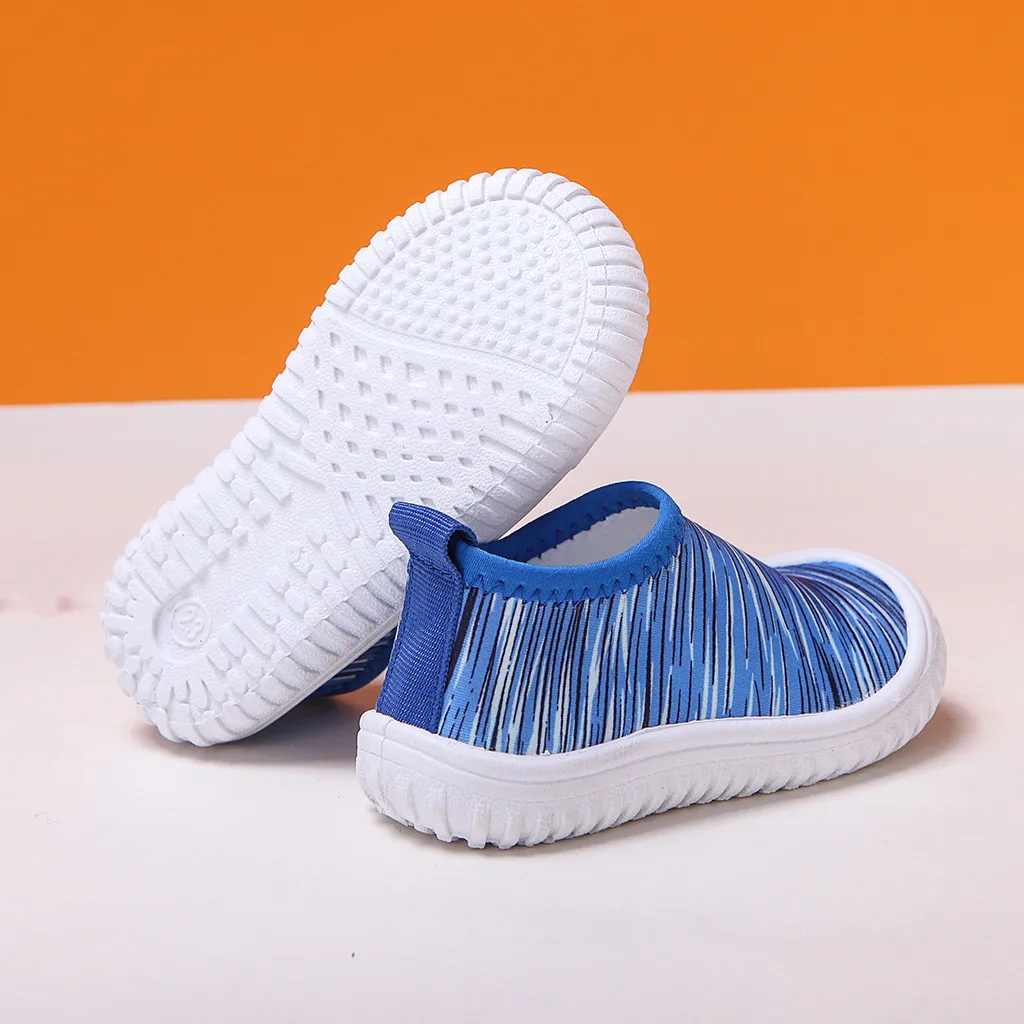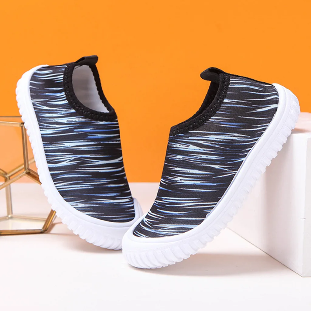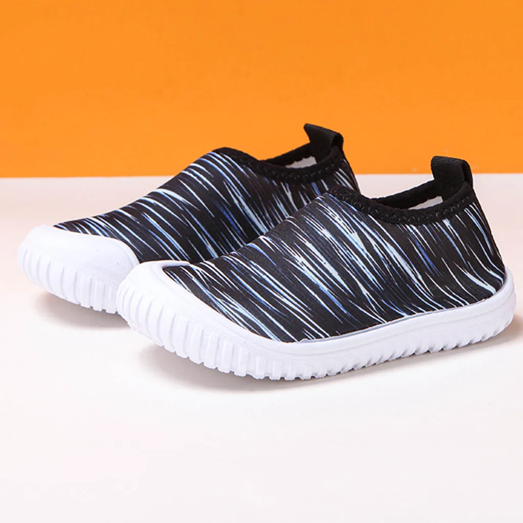 Летние полосатые кроссовки без шнуровки для маленьких мальчиков и девочек