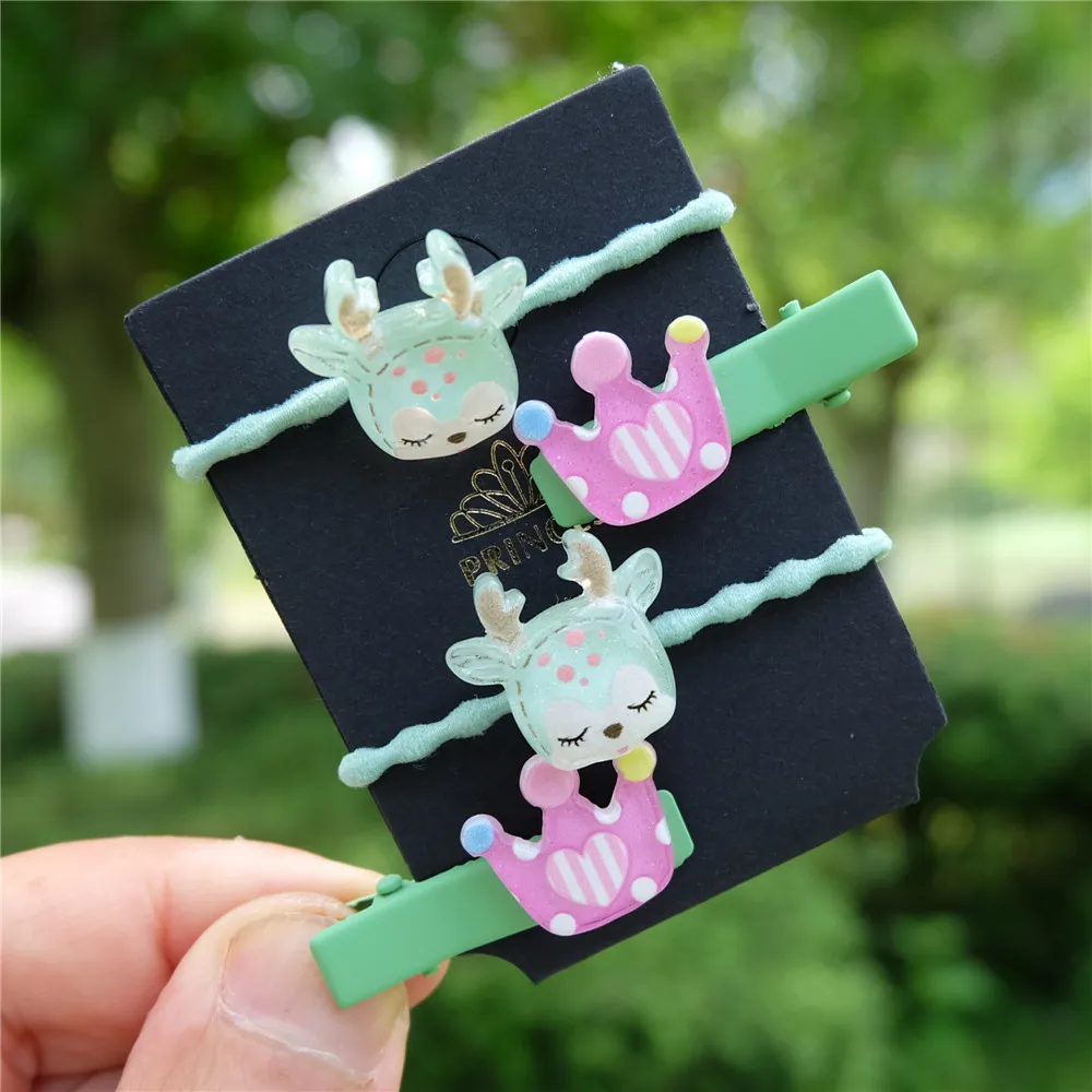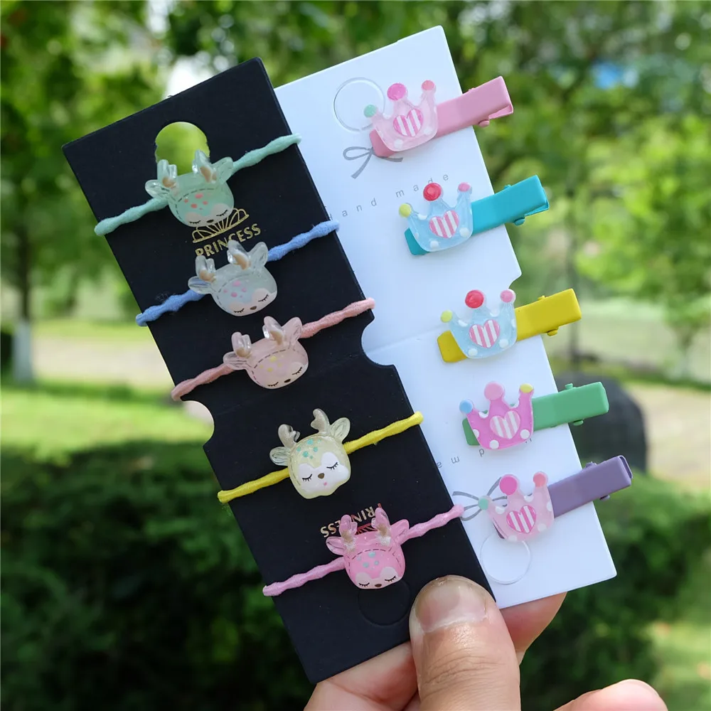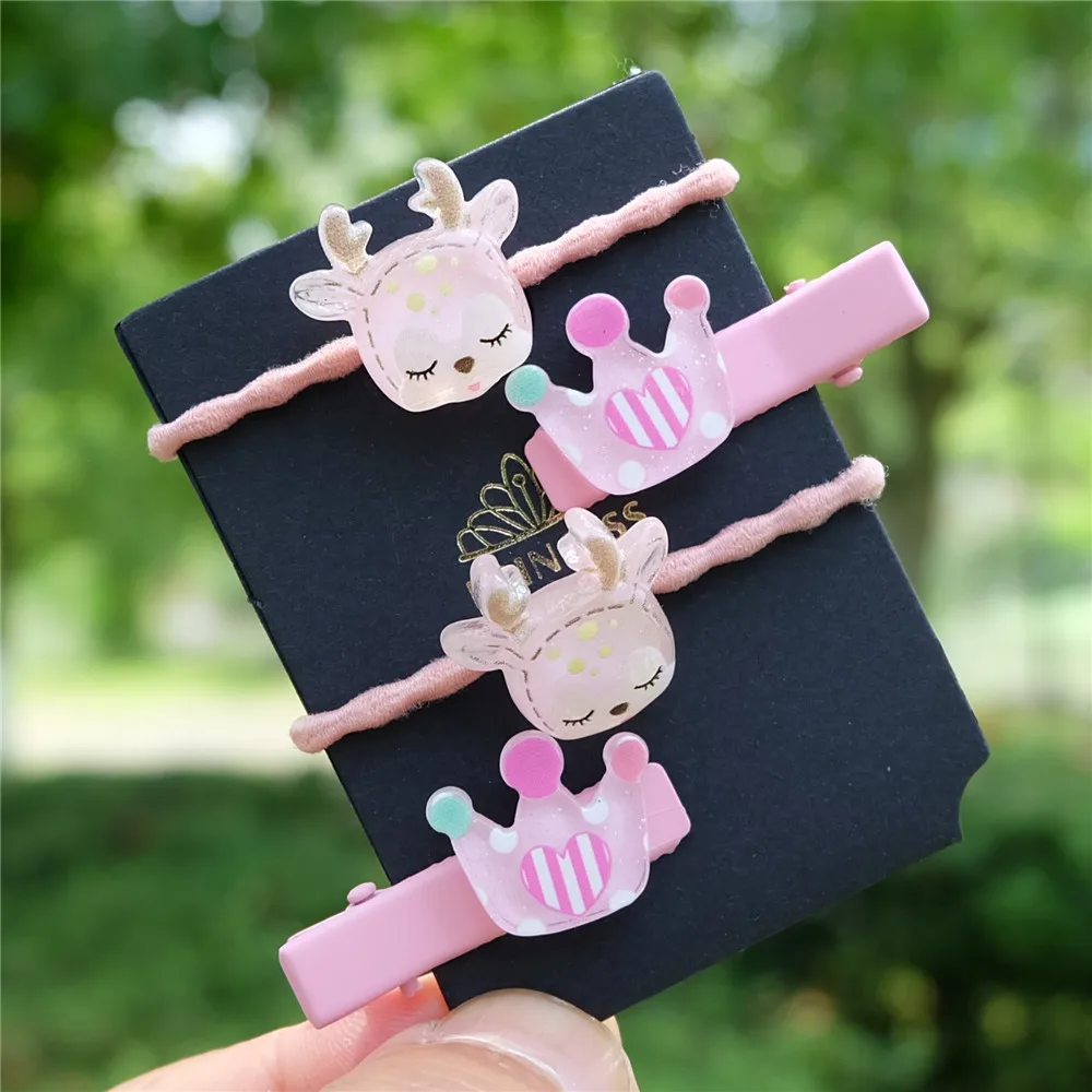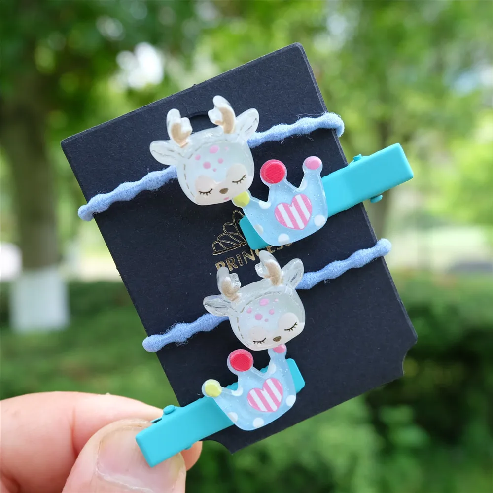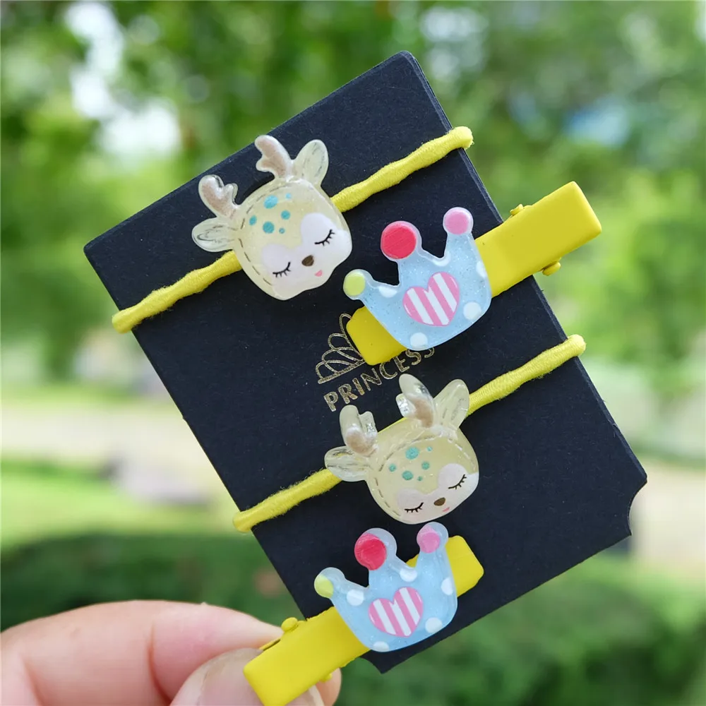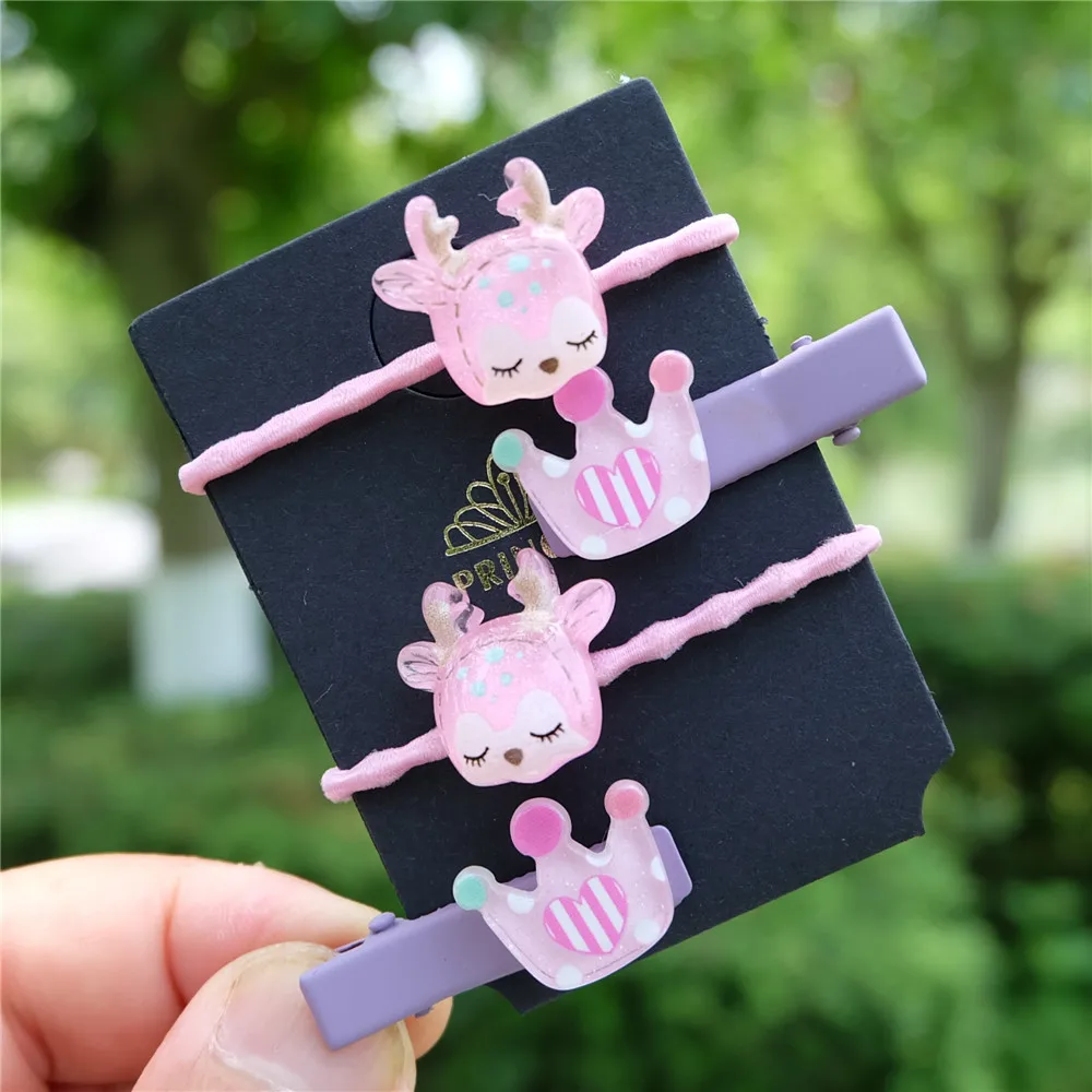 Детская заколка для волос в форме короны, цветные заколки, милый мультяшный олененок, канатная Резиновая лента, головной убор, набор для девочек, детские аксессуары для волос Цвет: желтый, синий, розовый, зеленый, фиолетовый Резинка для волос Размеры: 3,2 см Заколка для волос, Размеры: 3,5 см Посылка: полипропиленовый пакет/без бумажной карты
