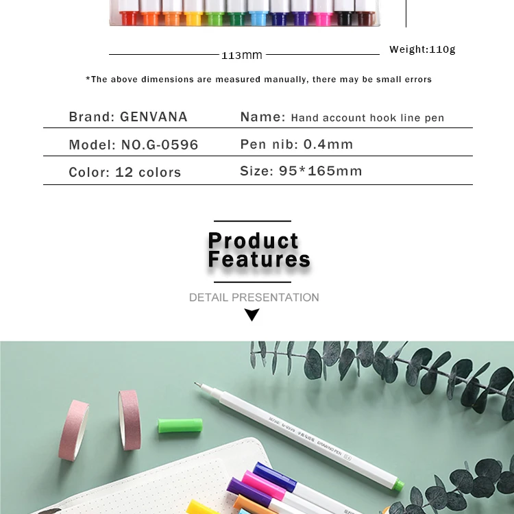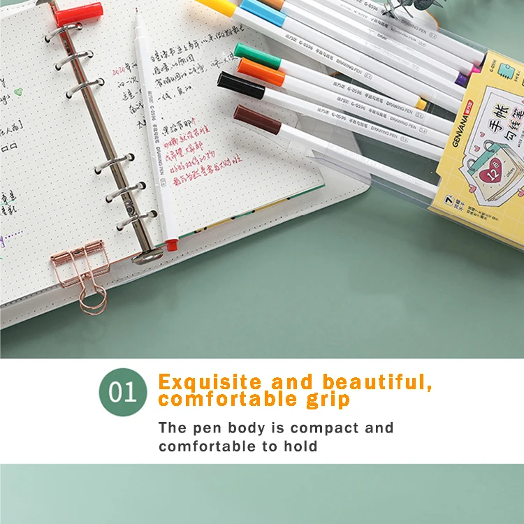 GENVANA G-0596 ручная ручка-крючок, игла, 12 цветов, ручка на водной основе для девочек, заметки/дневники/ручная копия, специальная ручная ручка, сделай сам