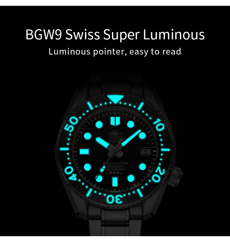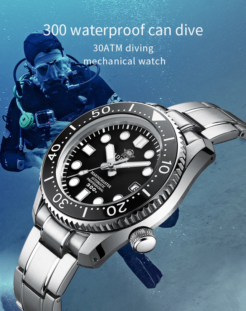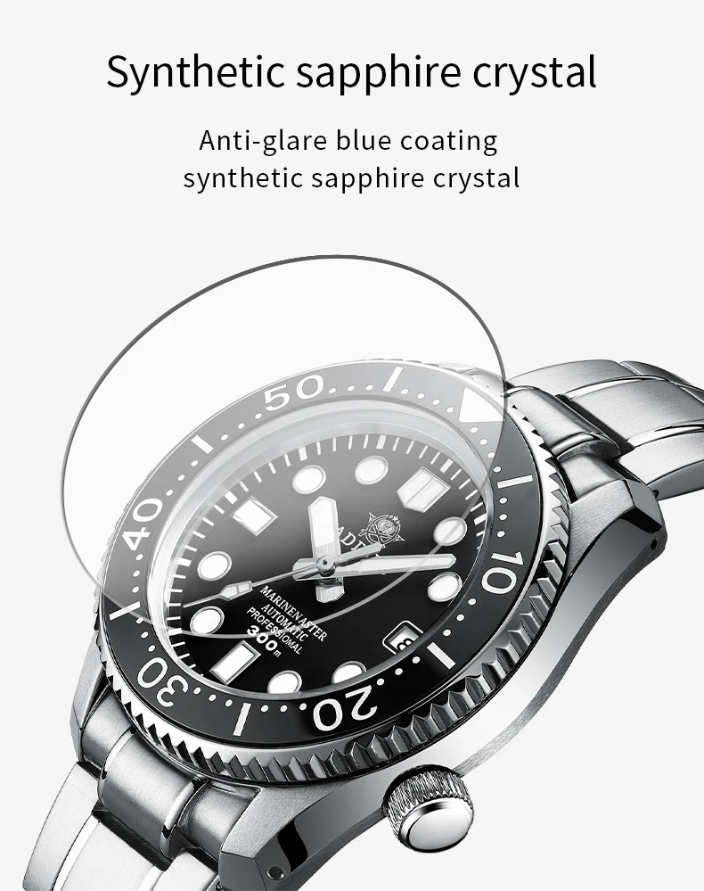 Автоматические часы Addies Mechancial Japan NH35a, сапфировое стекло, сталь, 300 м, 316L, все в одном, чехол C3, светящийся, 300 м, для дайвинга