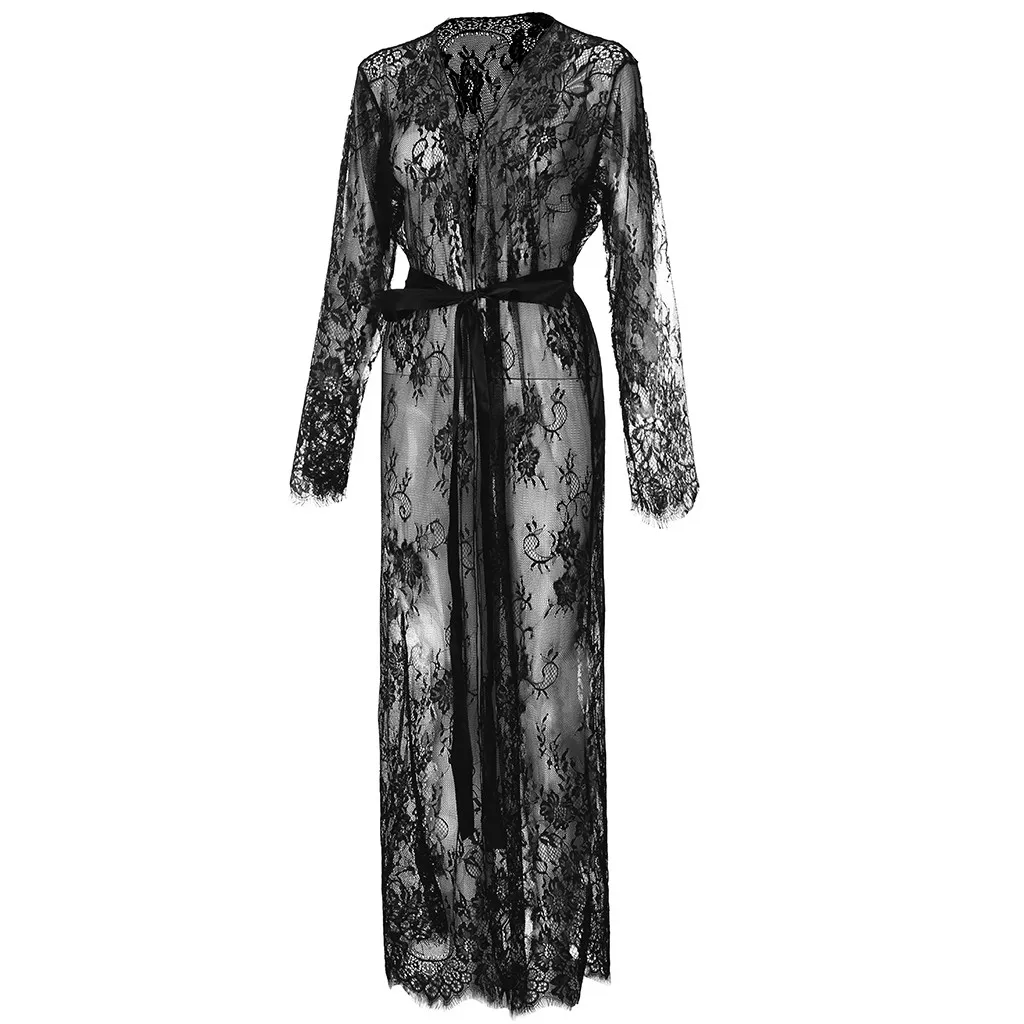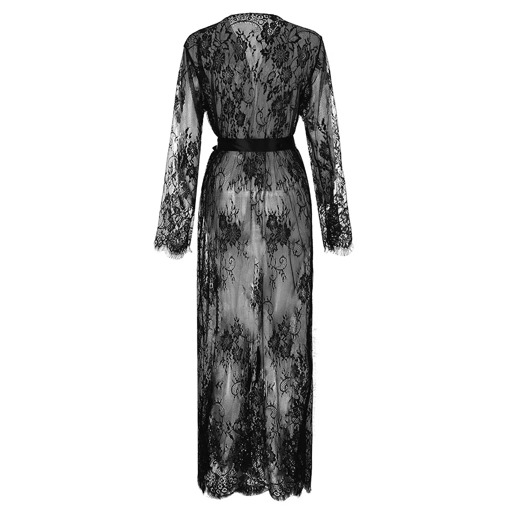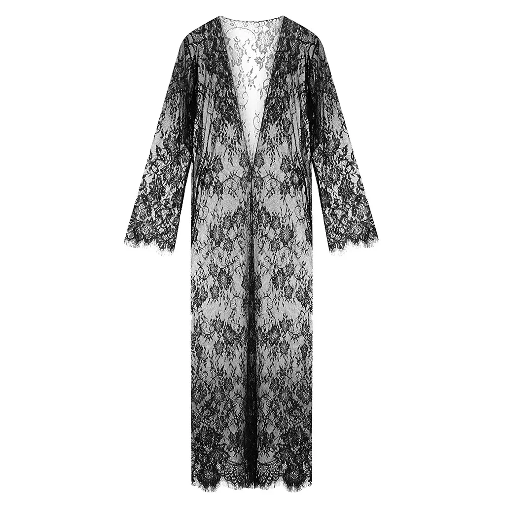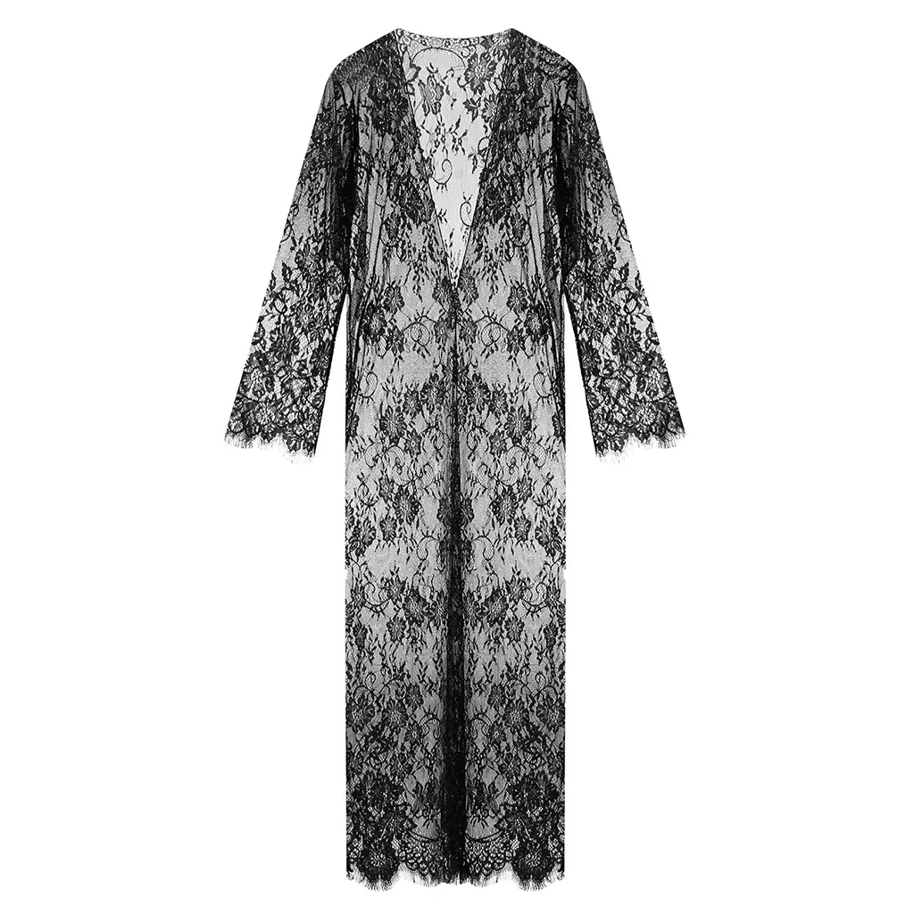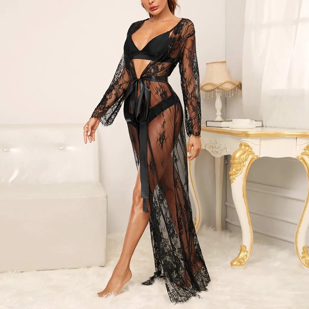 Женское кружевное белье с сетчатым поясом, длинный халат с длинным рукавом, бикини, блуза, Пляжное Платье